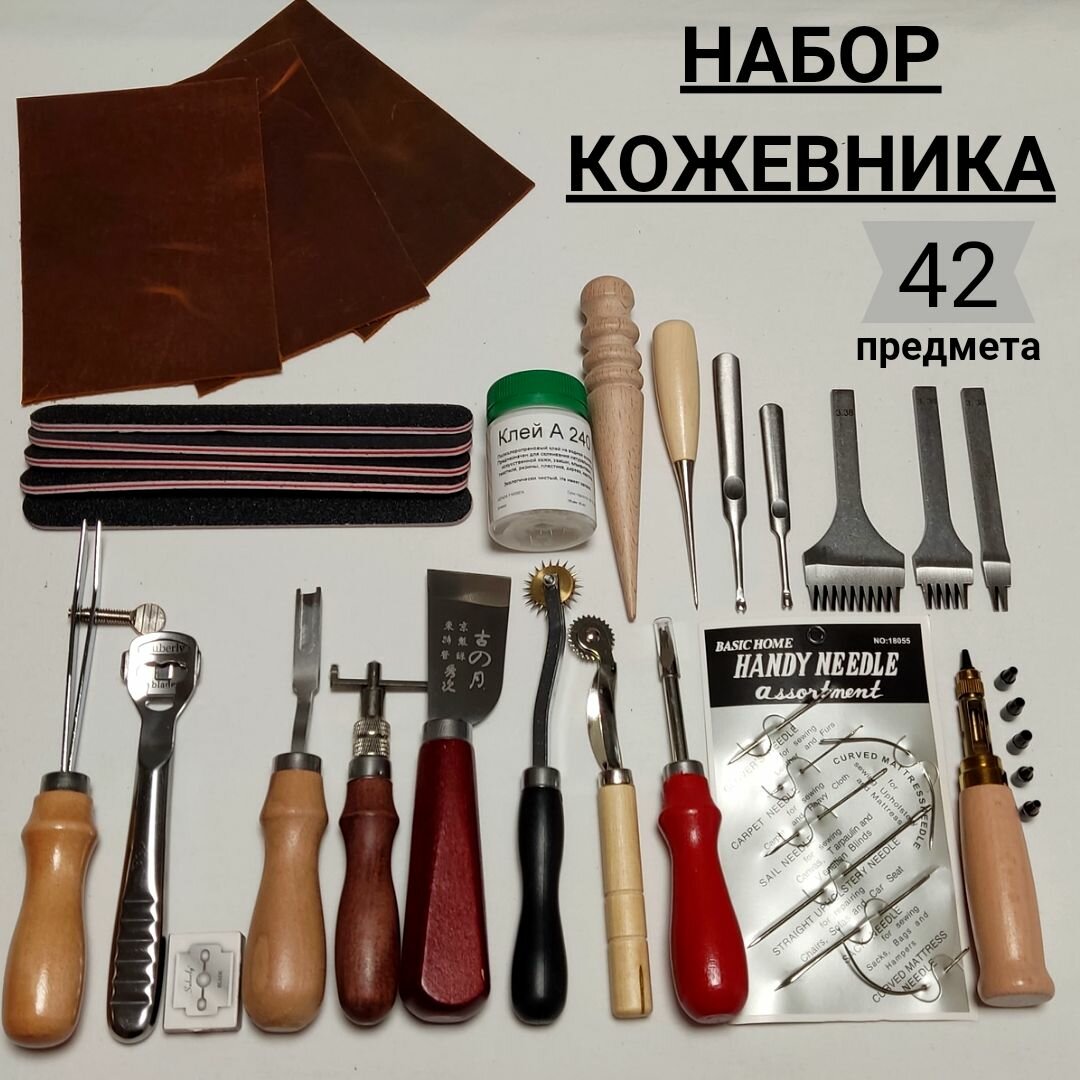 10 цен на Набор инструментов для работы с кожей 42 предмета, набор кожевника