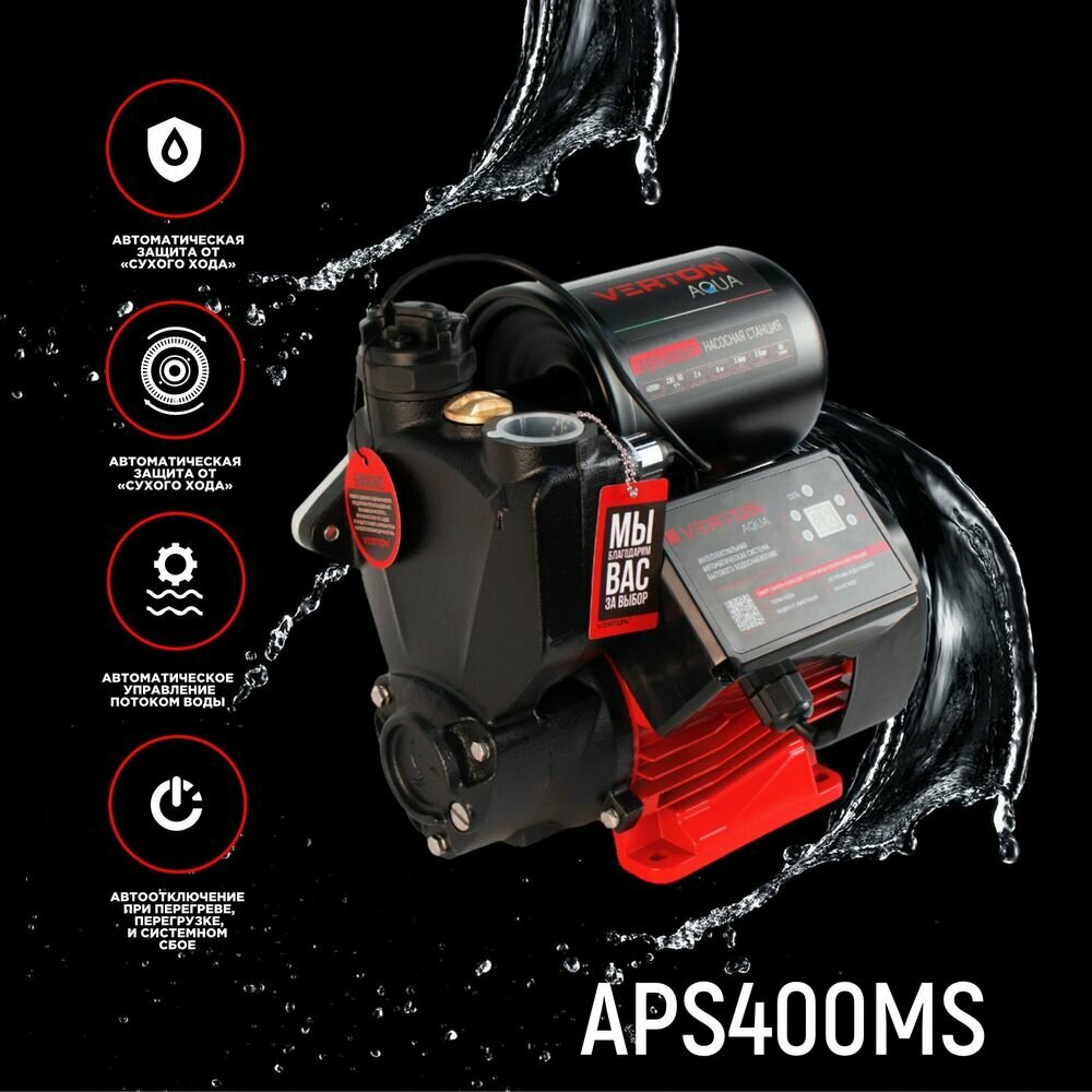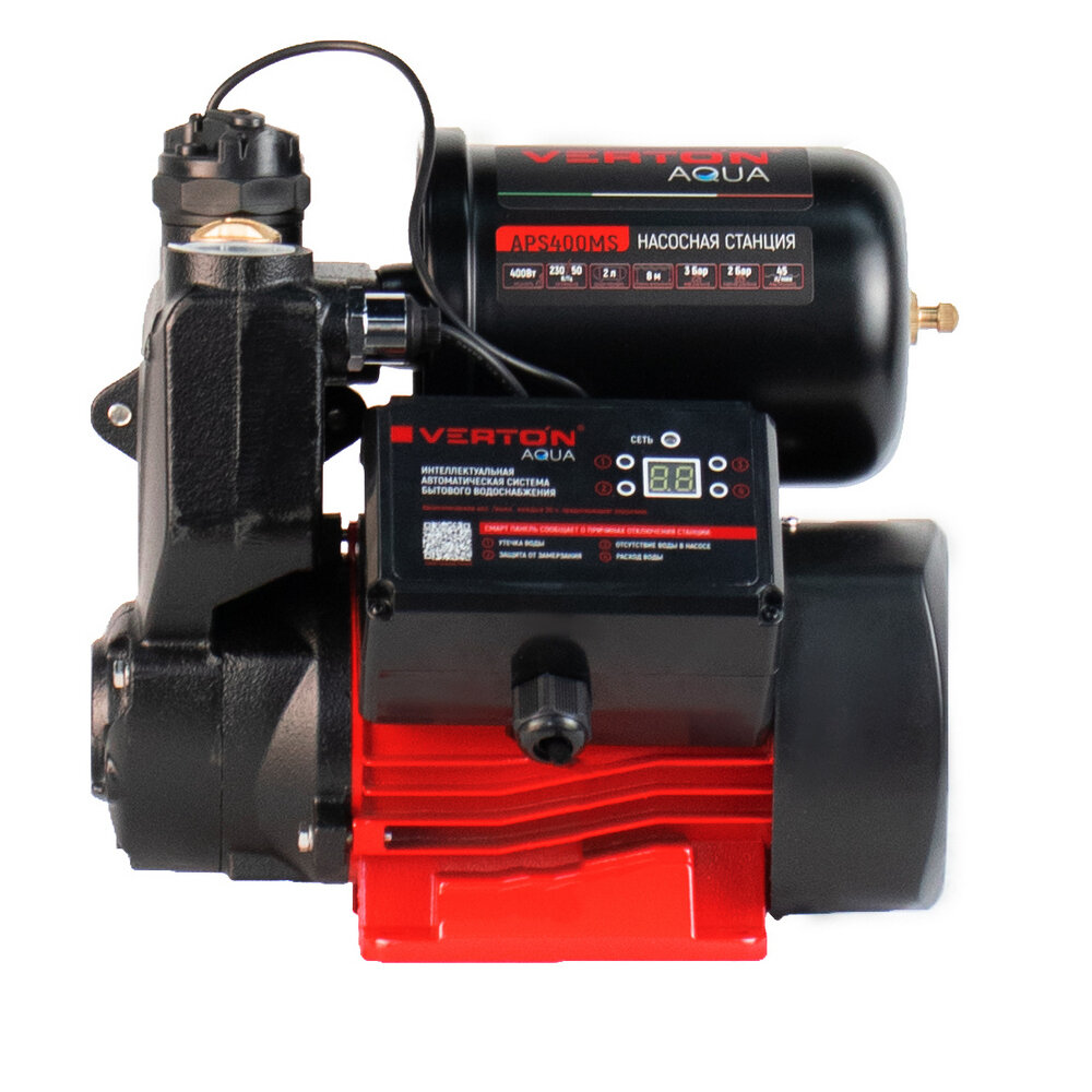 Насосная станция Verton AQUA APS400MS (400Вт, 43л/мин, 2л, гл. 8м, H 35м, вых. 1", 1.5 бар,дисплей) информация: