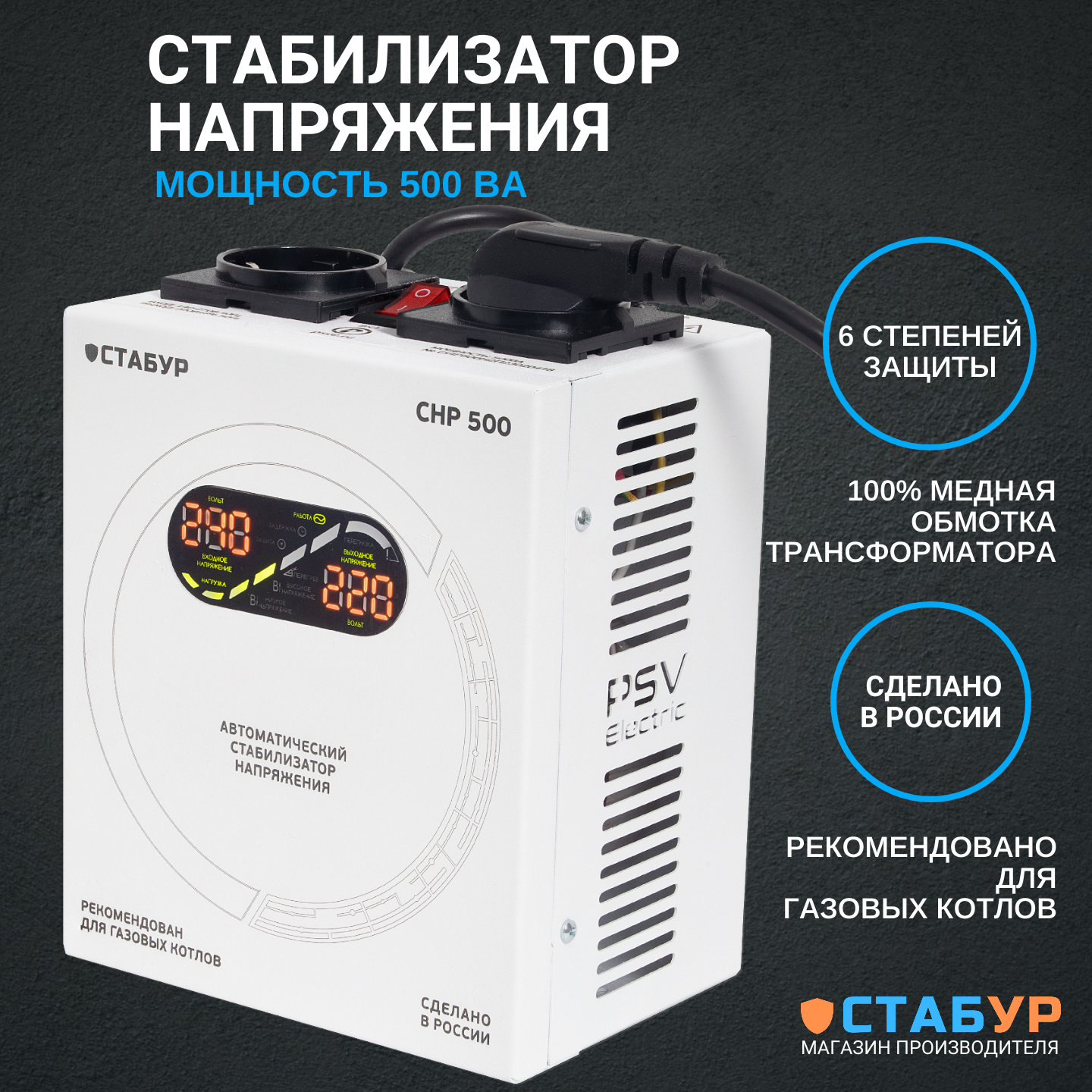 Отзывы на Стабилизатор напряжения настенный 220в однофазный стабур СНР-500н2п для газового котла