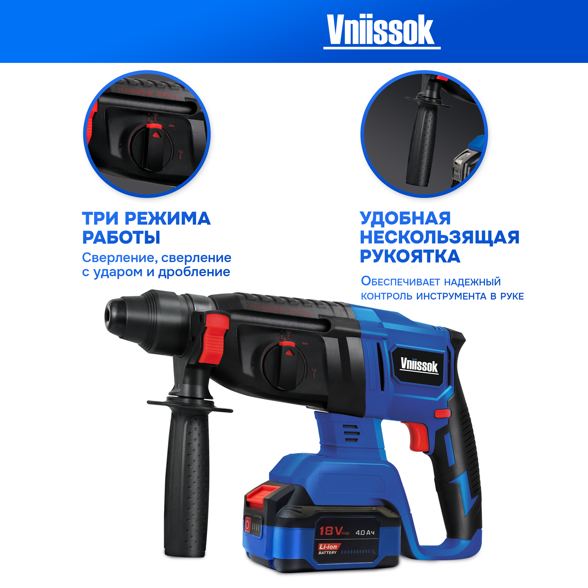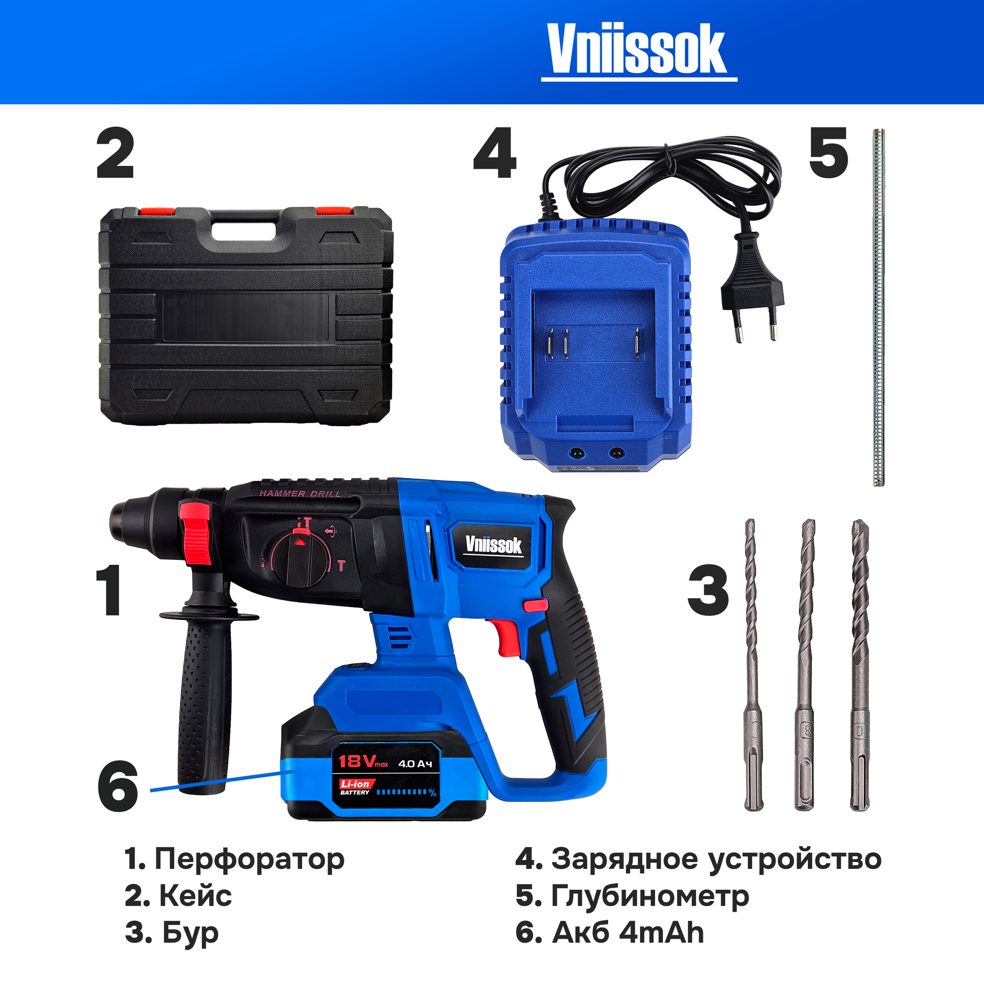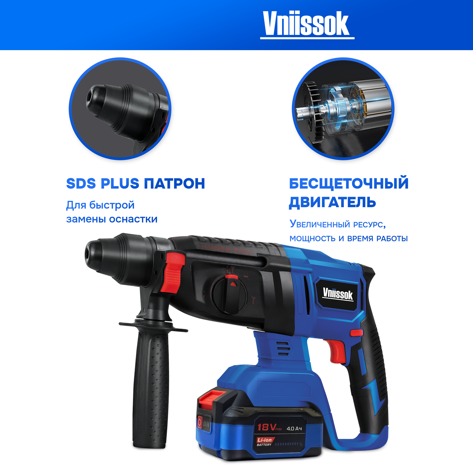 Перфоратор бесщеточный аккумуляторный VNIISSOK 2Дж, V-18В информация: