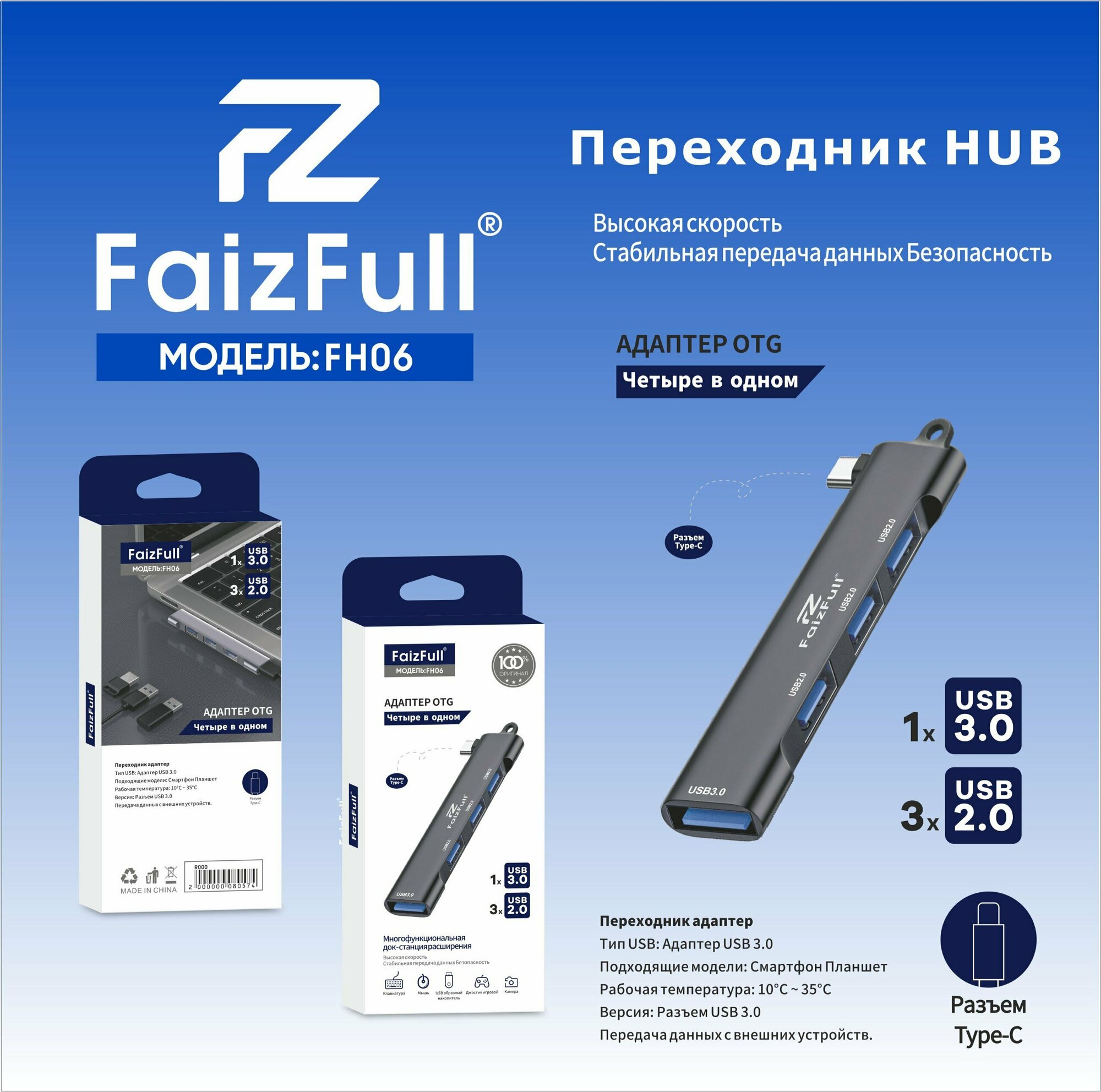 USB-концентратор, TYPE C на 4 TYPE C - разветвитель для зарядки, белый, 1 шт.