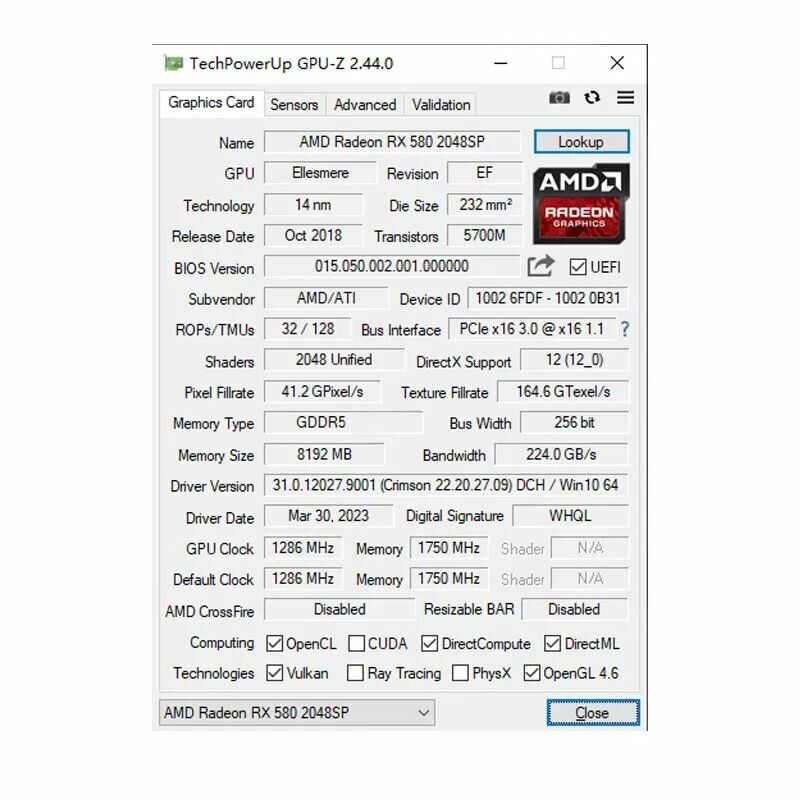 Видеокарта AMD Radeon RX 580 8Gb OEM информация: