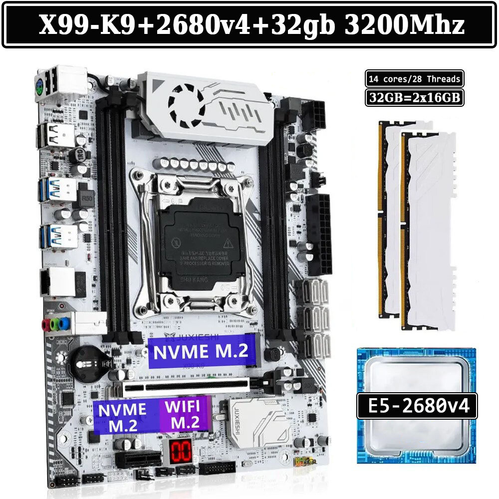 10 цен на Комплект материнская плата Juxieshi X99-K9 + Xeon 2680V4 + 32GB DDR4 3200Mhz