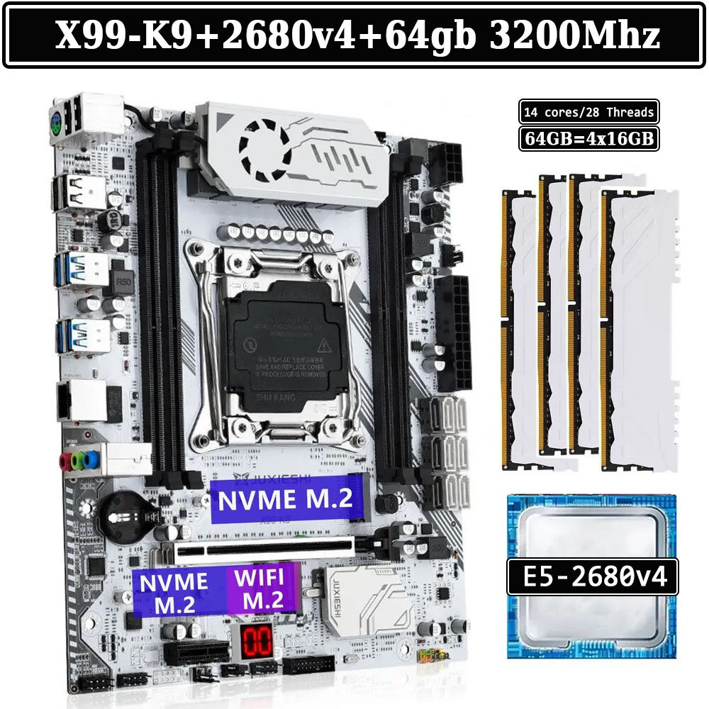 10 цен на Комплект материнская плата Juxieshi X99-K9 + Xeon 2680V4 + 64GB DDR4 3200Mhz