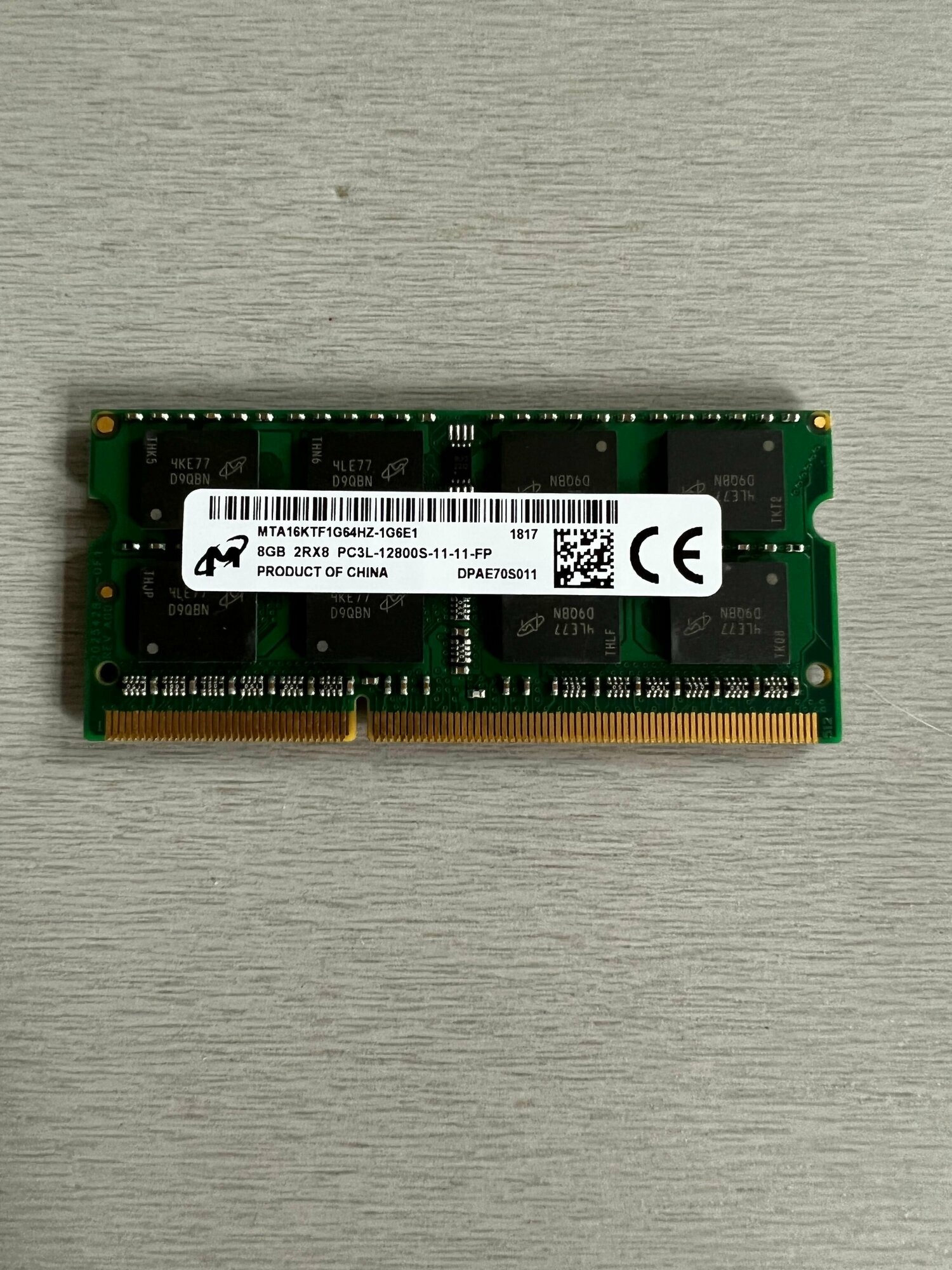 Оперативная память Micron DDR 3 SODIMM 8GB 1,35V 1600Mhz для ноутбука информация: