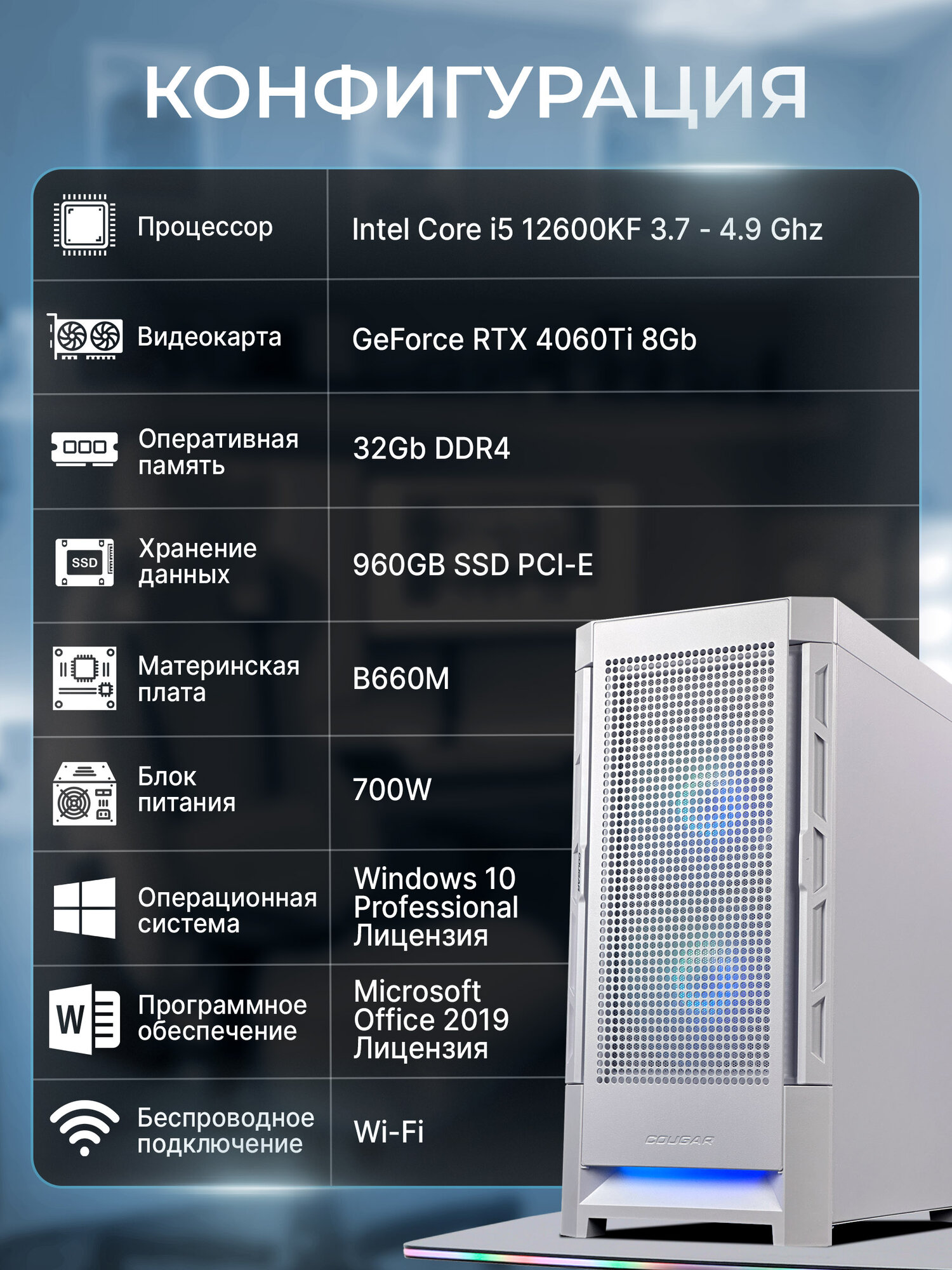 Игровой компьютер Robotcomp Пантера V2 Plus Intel Core i7 12700F / 32GB 3000MHz / 960Gb PCI-E/ GeForce RTX 3050/ B660M / 600W / Win10Pro