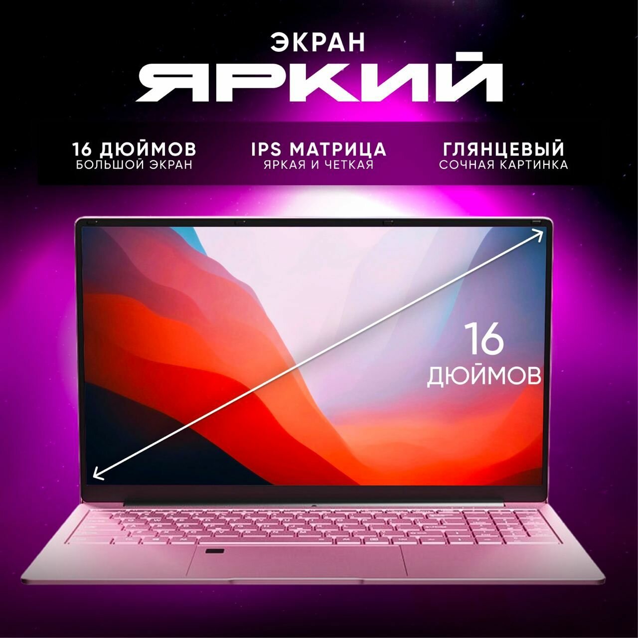 Ноутбук 16" IPS Full HD, N5095 (до 2.90 ГГц), RAM 16 Гб, SSD 1 Tb розовый информация: