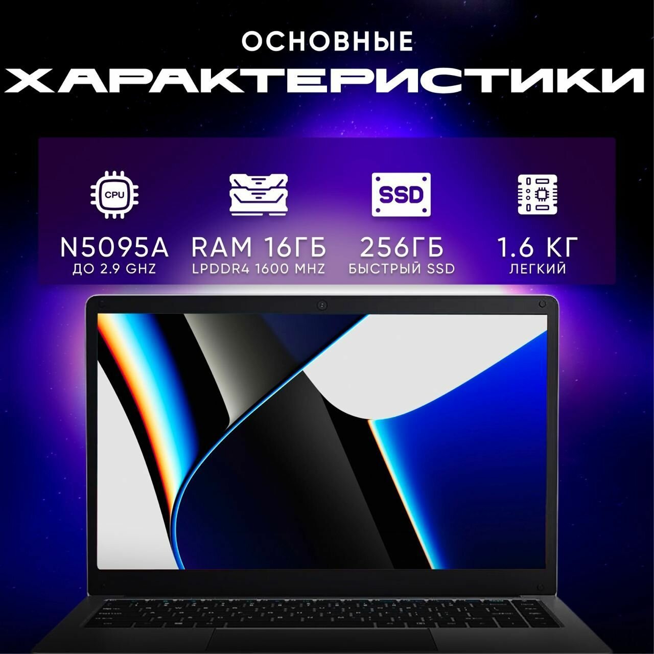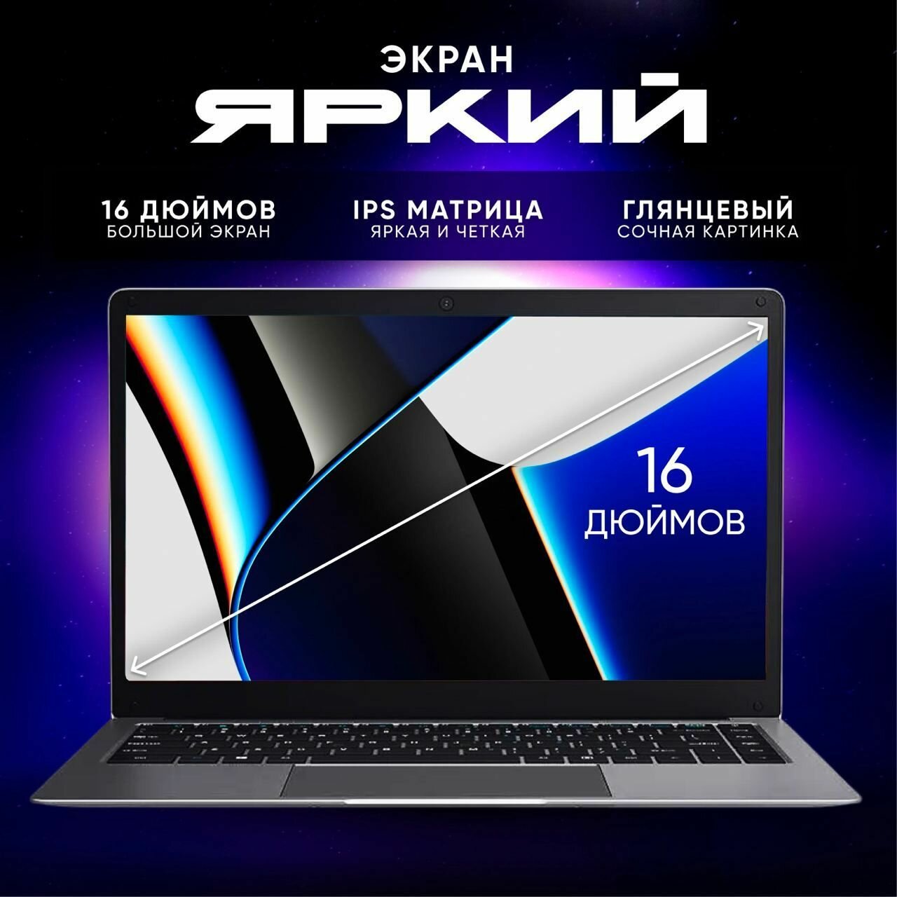 Ноутбук 16" IPS Full HD, N5095 (до 2.90 ГГц), RAM 16 Гб, SSD 256 Gb, серебристый информация: