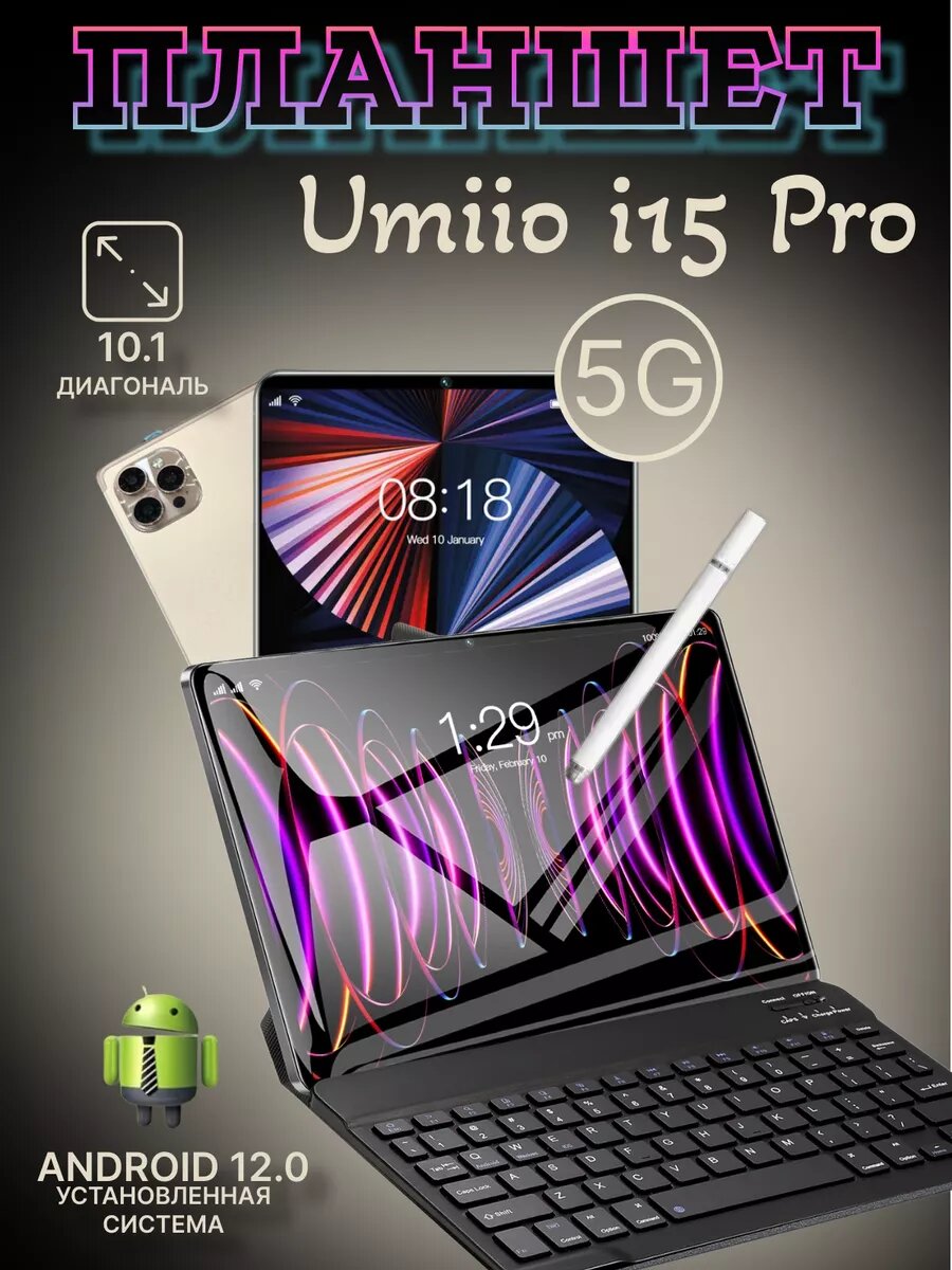 Планшет с клавиатурой Umiio Р60 Pad. 2 sim, 10.1" 6GB 128GB, планшет андроид 12 OS игровой со мышкой