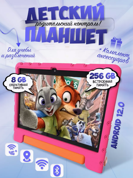 Детский планшет TOUCH KT-36, 8+256ГБ, 10 дюймов, Розовый информация: