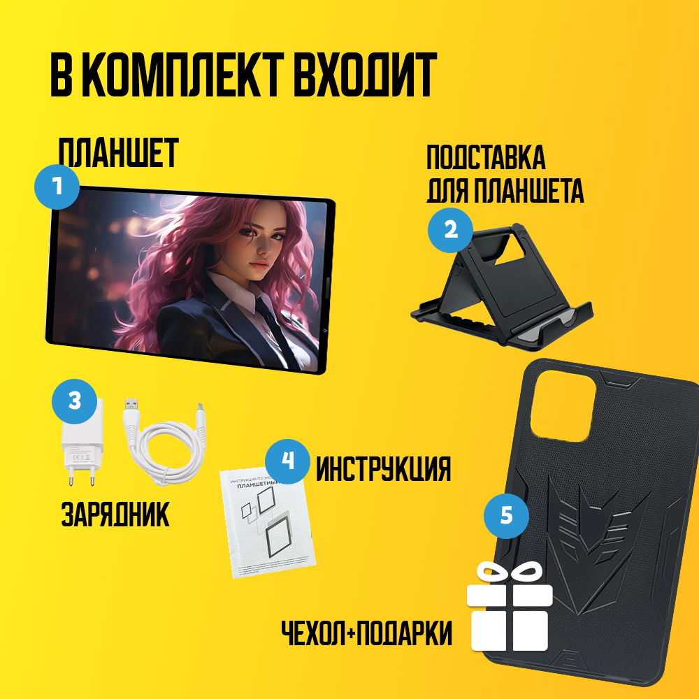 | Комплектация | Планшет, чехол, подставка, стилус, зарядное устройство, подарки(на фото). |