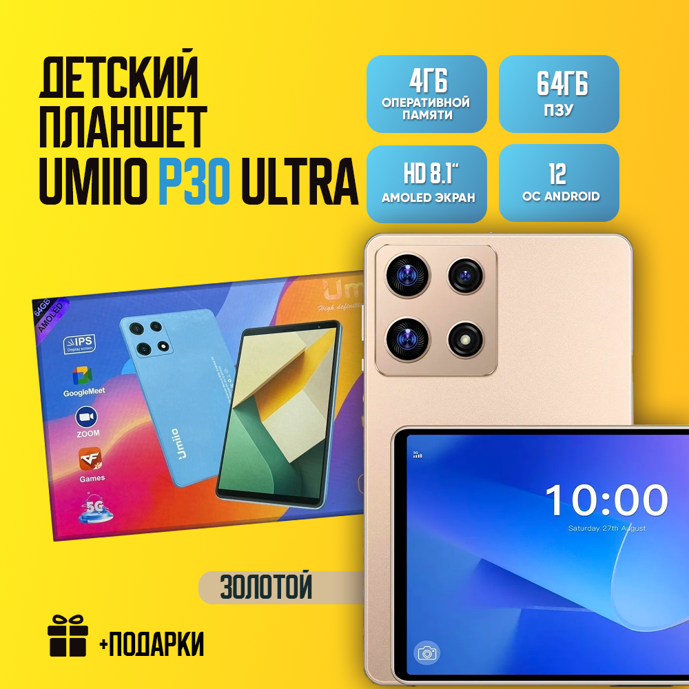 10 цен на Детский планшет Umiio P30 Ultra 4/64, 8.1", Android 12, 1 sim, Золотой