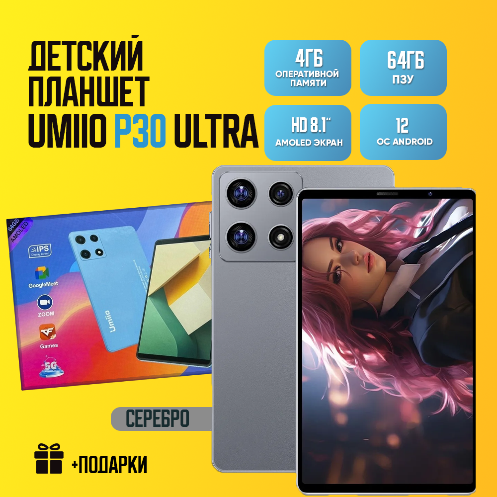 Детский планшет Umiio P30 Ultra 4/64, 8.1", Android 12, 1 sim, Серебро информация: