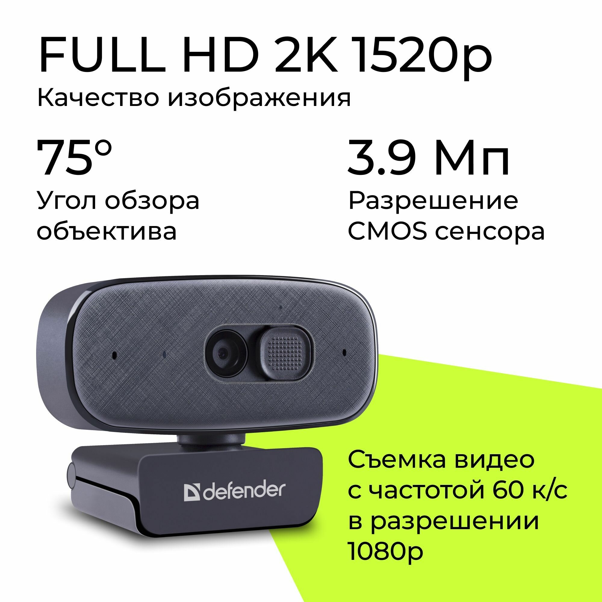 Веб-камера Defender G-lens 2695 FullHD 2K 1520p, 3.9 МП
