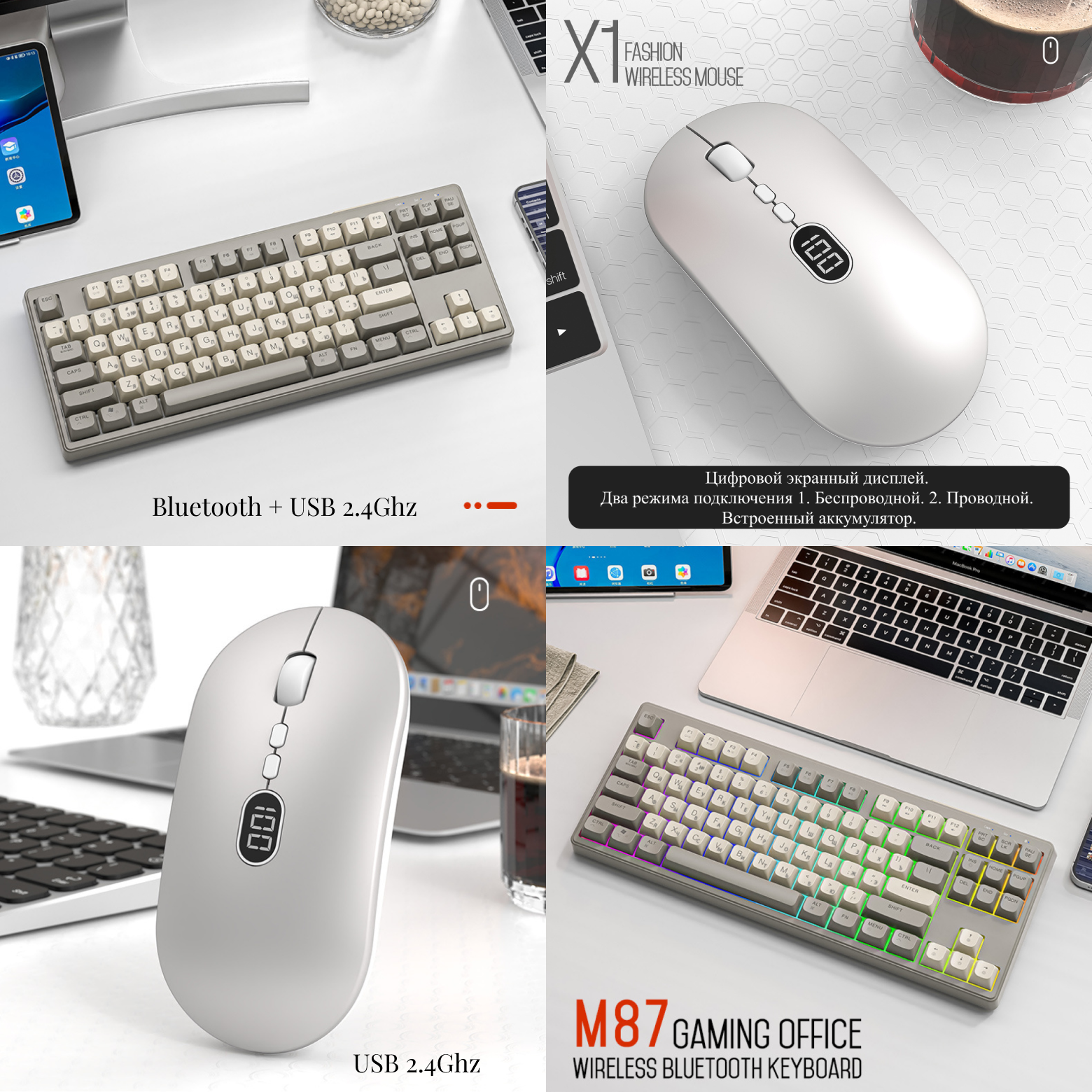 Комплект мышь клавиатура беспроводная русская Wolf М87 Bluetooth+2.4Ghz + мышка Х1 USB 2.4Ghz набор для компьютера ноутбука мембранная mouse, keyboard информация: