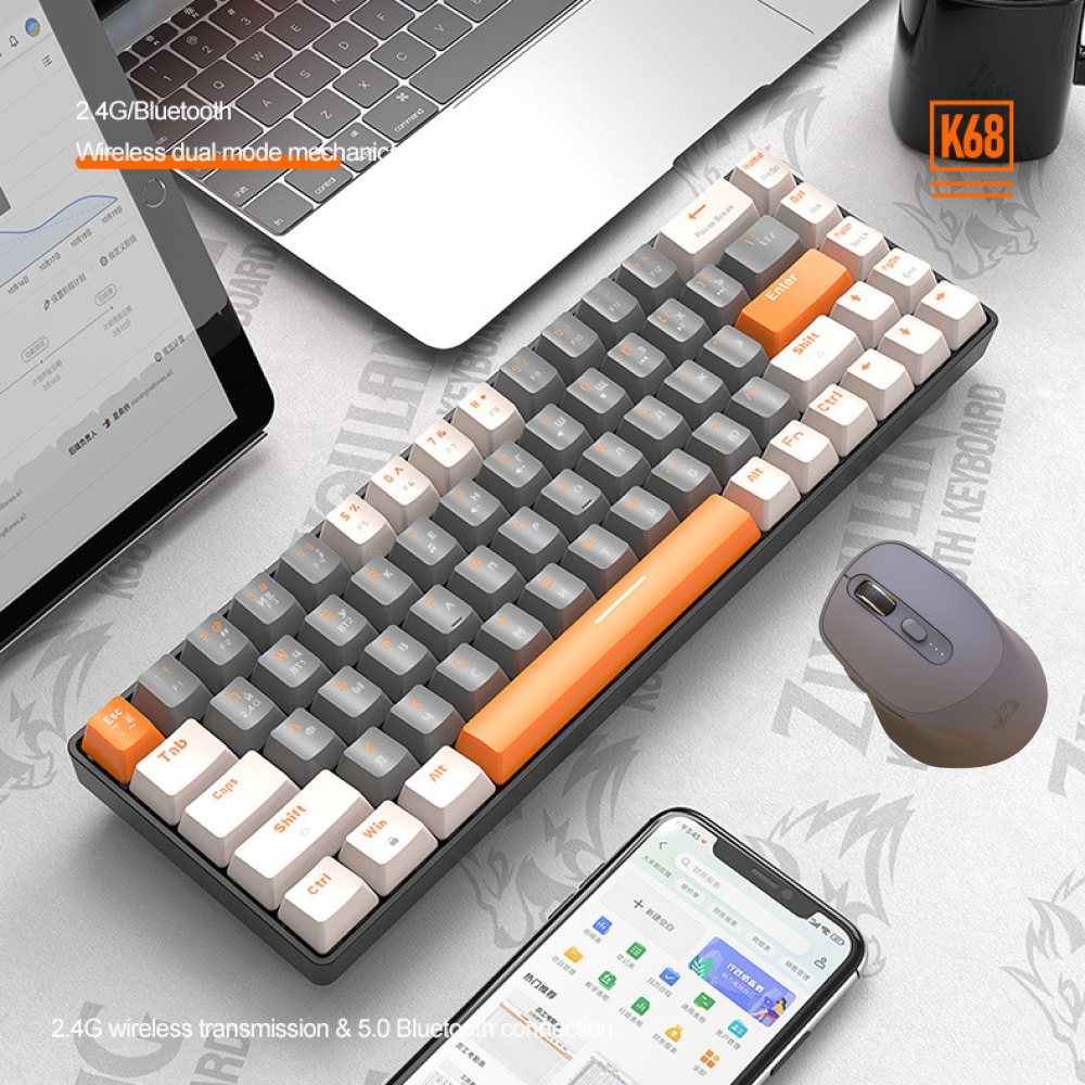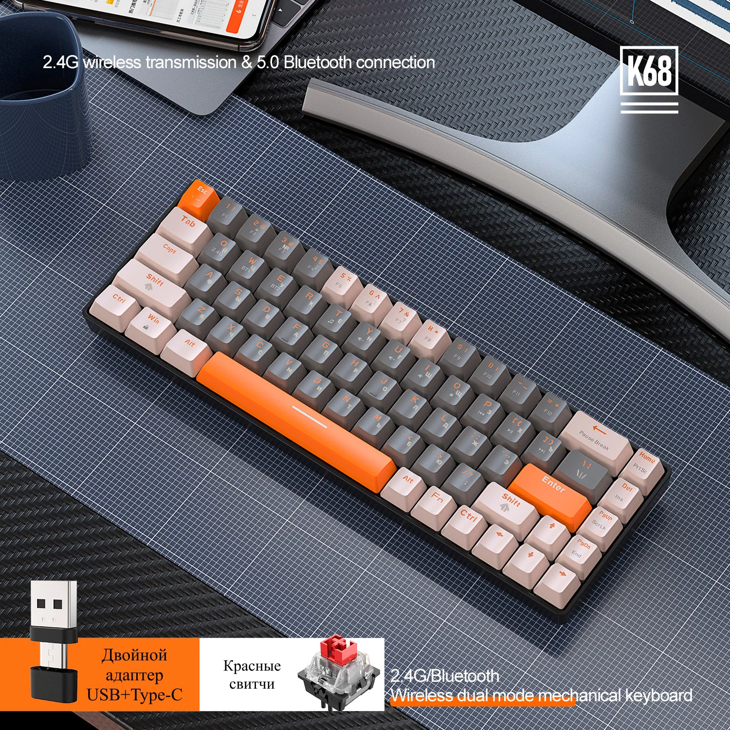 10 цен на Комплект мышь клавиатура беспроводная механическая русская Wolf К68 + Hot-Swap мышка Х7 набор для компьютера ноутбука mouse, keyboard