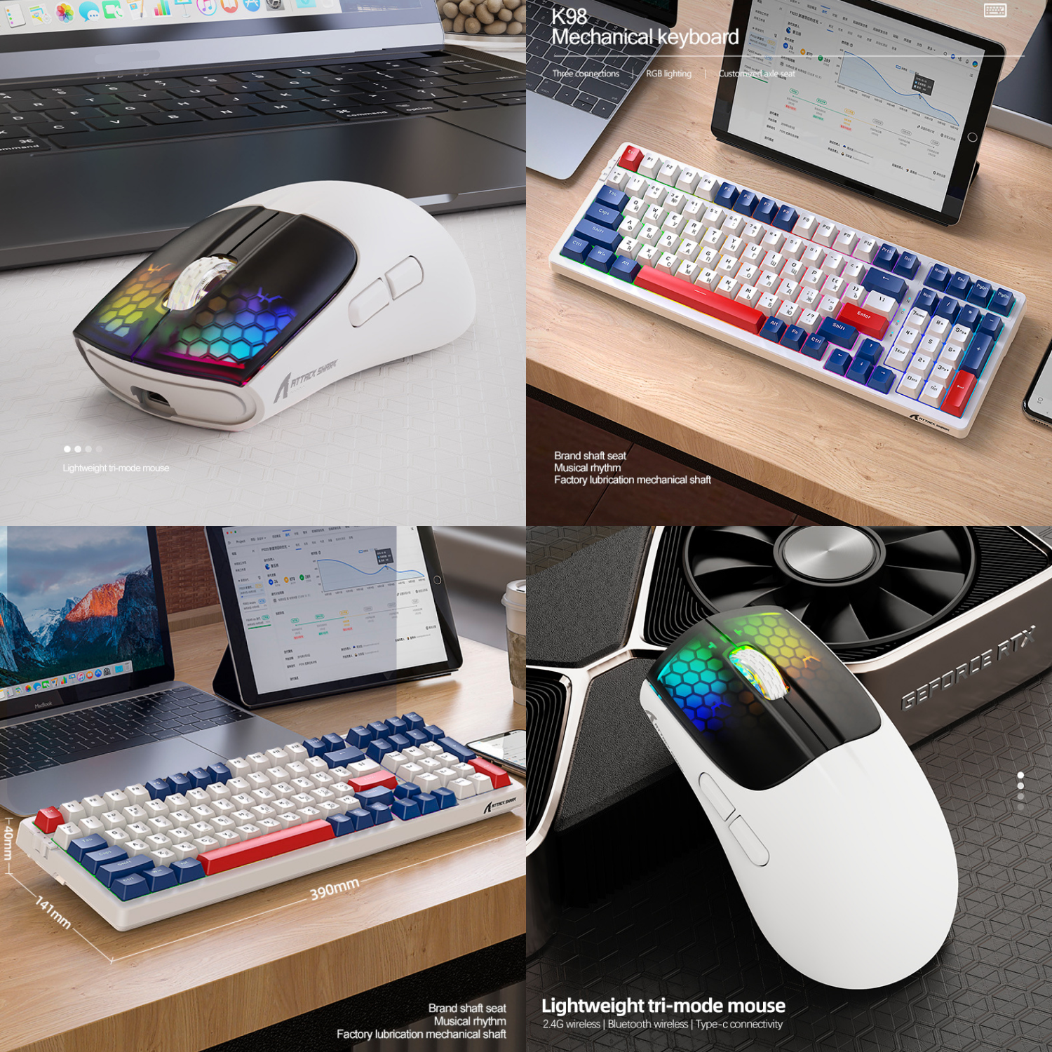 10 цен на Комплект мышь клавиатура беспроводная механическая русская Attack Shark К 98 Hot-Swap мышка Х5 Bluetooth + 2.4Ghz+проводная с подсветкой набор