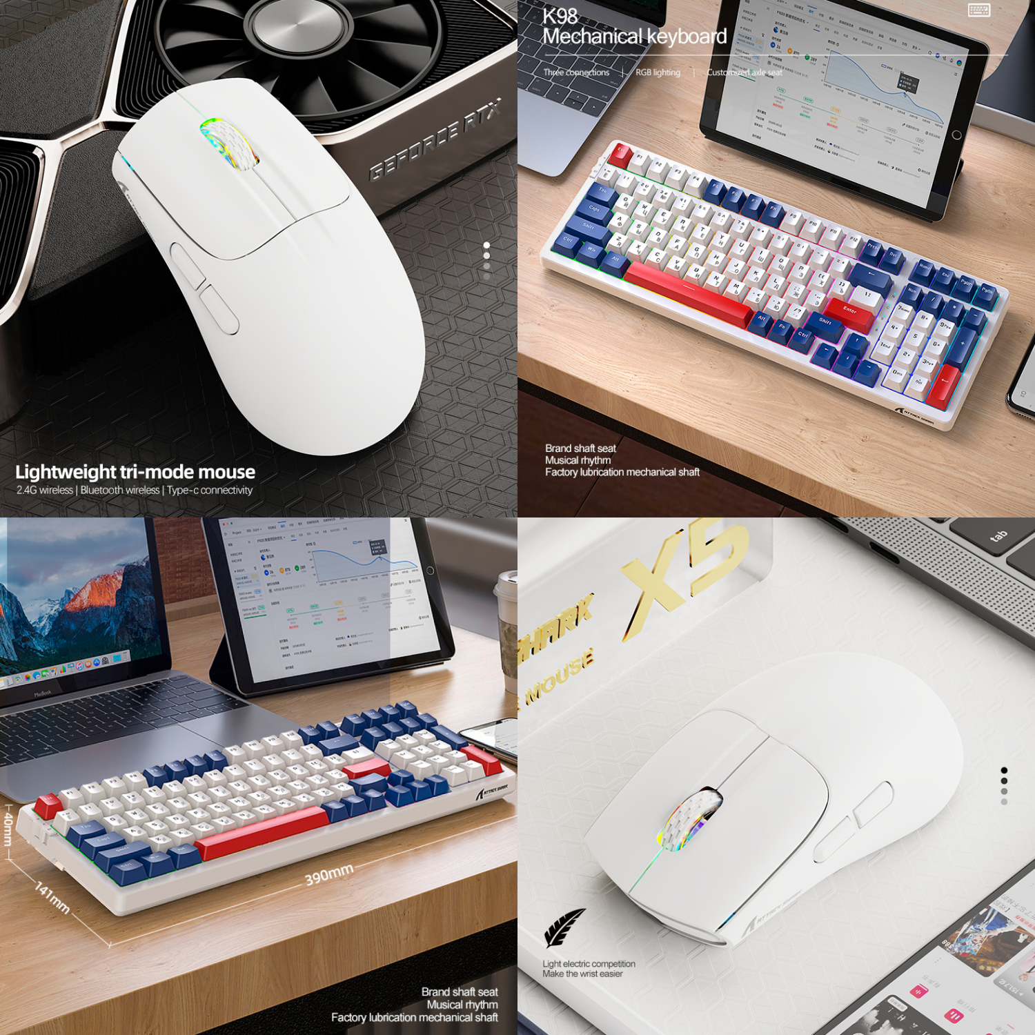 10 цен на Комплект мышь клавиатура беспроводная механическая русская Attack Shark К 98 Hot-Swap мышка Х5 Bluetooth+2.4Ghz+проводная с подсветкой набор