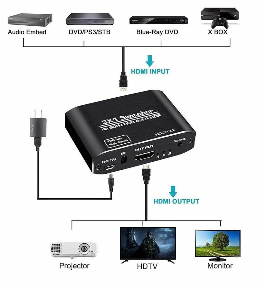 Отзывы на HDMI Переключатель switch вход 3 в 1 Выход с пультом ду для XBox, PS4, PS5 Pro, 4K 60 Гц, 2.0b