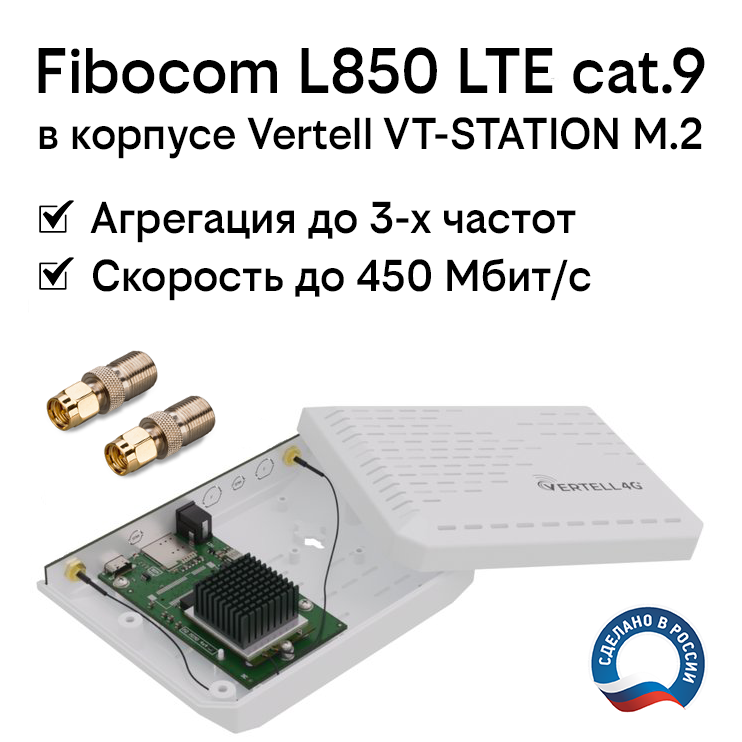 Отзывы на Модем 4G LTE cat.9 Fibocom L850 в корпусе Vertell VT-STATION-M.2 с антенными адаптерами SMA-F