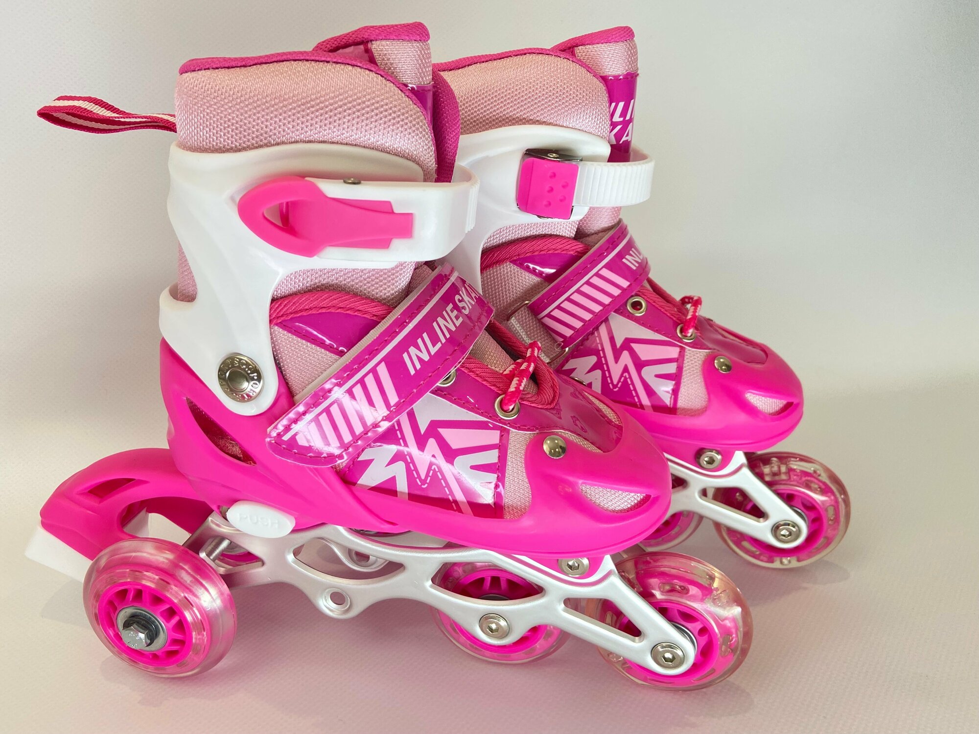 10 цен на Роликовые коньки раздвижные 29-33р ,свет колесо, алюм рама розовые