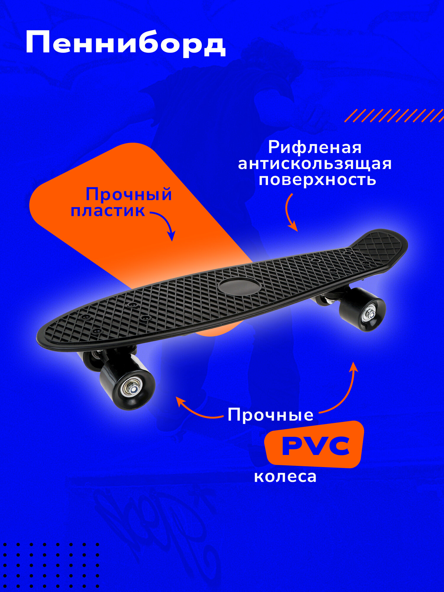 Отзывы на Скейтборд пласт. 55x15 см, PVC колеса без света с пластмассовым креплениям, чёрный