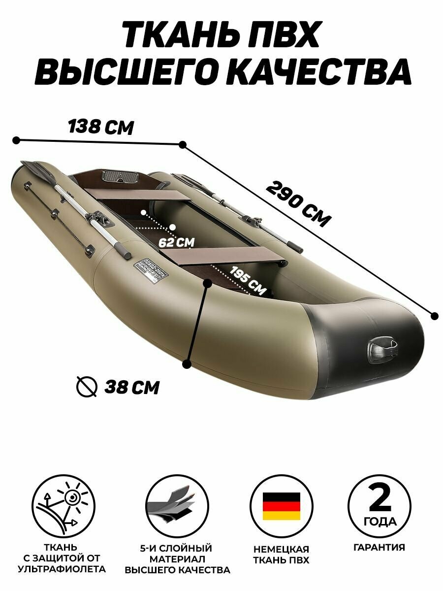 Лодка ПВХ под мотор поход 290 ТК, хаки информация: