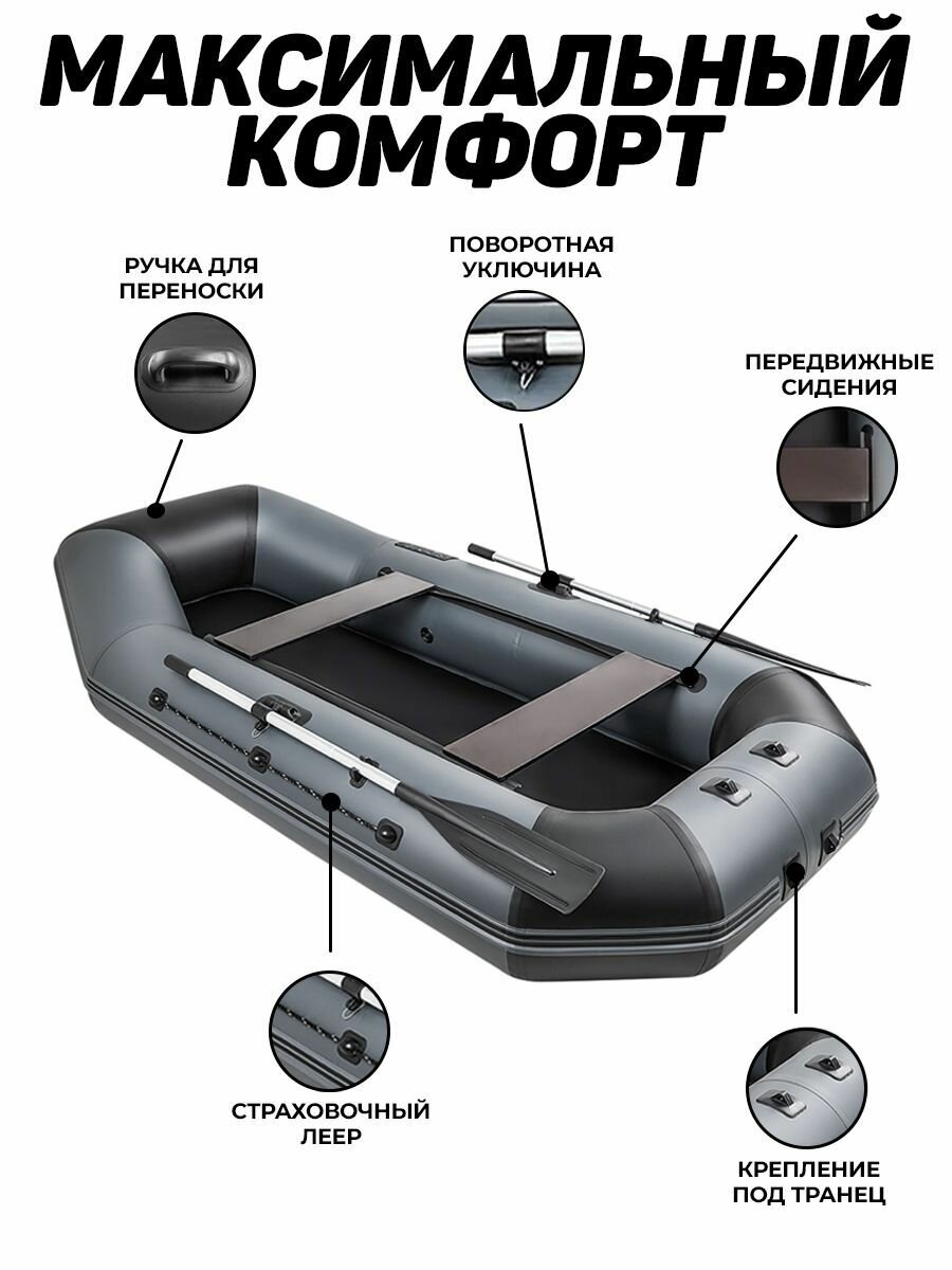 Лодка ПВХ моторно-гребная Броня 280 М, серый;черный информация: