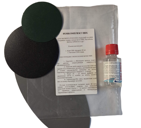 Ремкомплект (флакон 30мл) для ремонта лодок и других изделий из ПВХ (матрасы, бассейны, тенты, тюбинги и др.) информация: