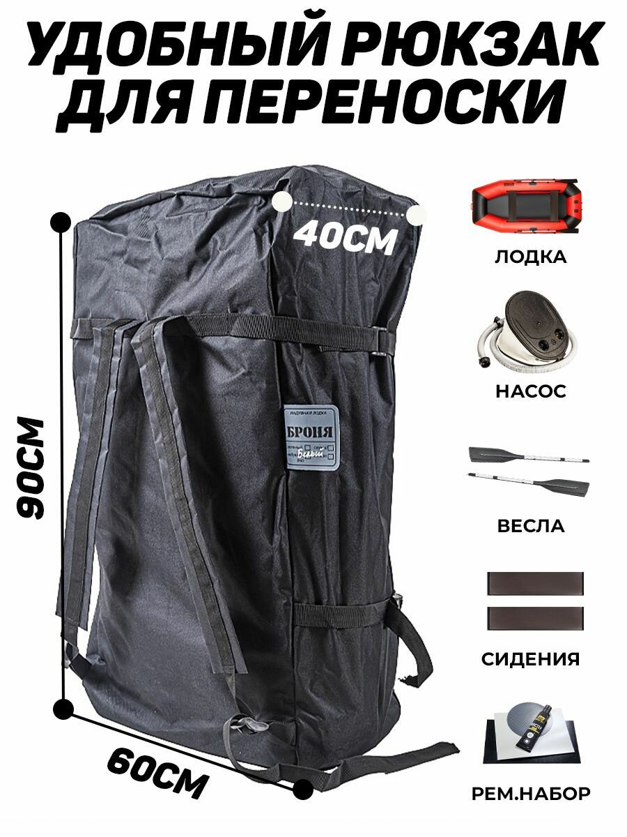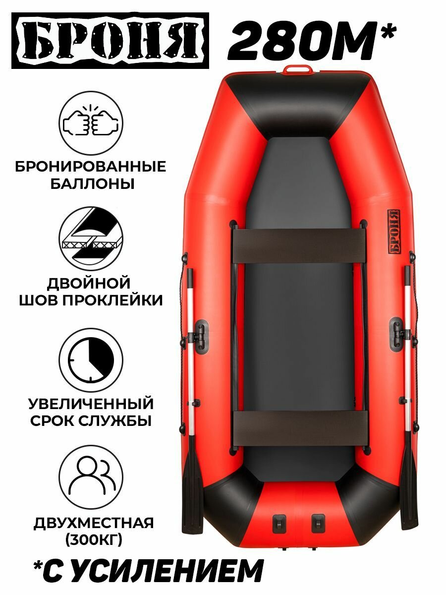 Лодка ПВХ моторно-гребная Броня 280 М, красный;черный информация:
