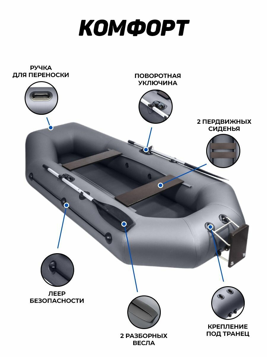 Лодка ПВХ моторно-гребная Барс 300, графит, навесной транец информация: