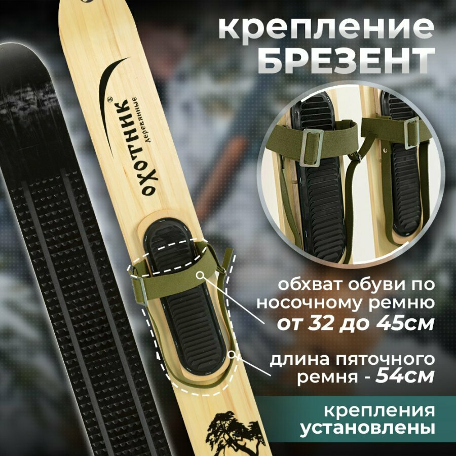 Лыжи охотничьи пластиковые 120х15 см Маяк охотник с креплением брезент (дерево-пластик) информация: