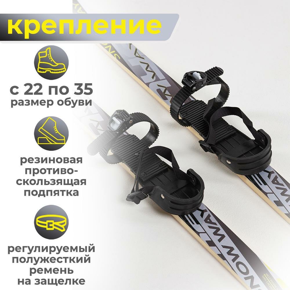 Лыжи детские подростковые 130 см Маяк с палками и креплениями дерево серый информация: