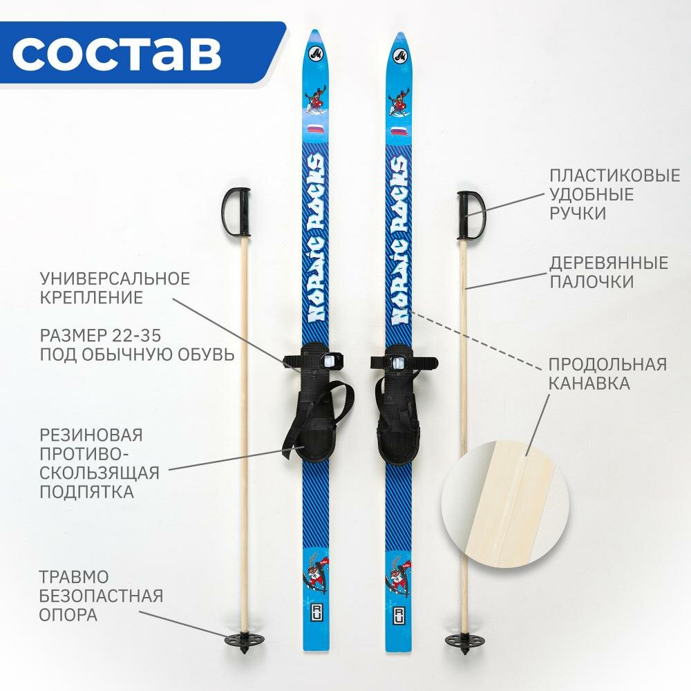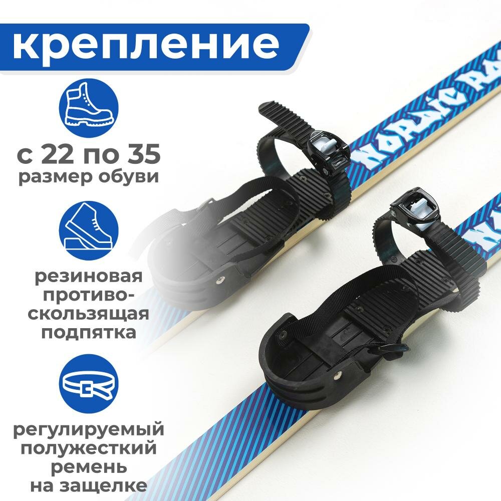 Лыжи детские 120 см Маяк с палками и креплениями дерево синий информация: