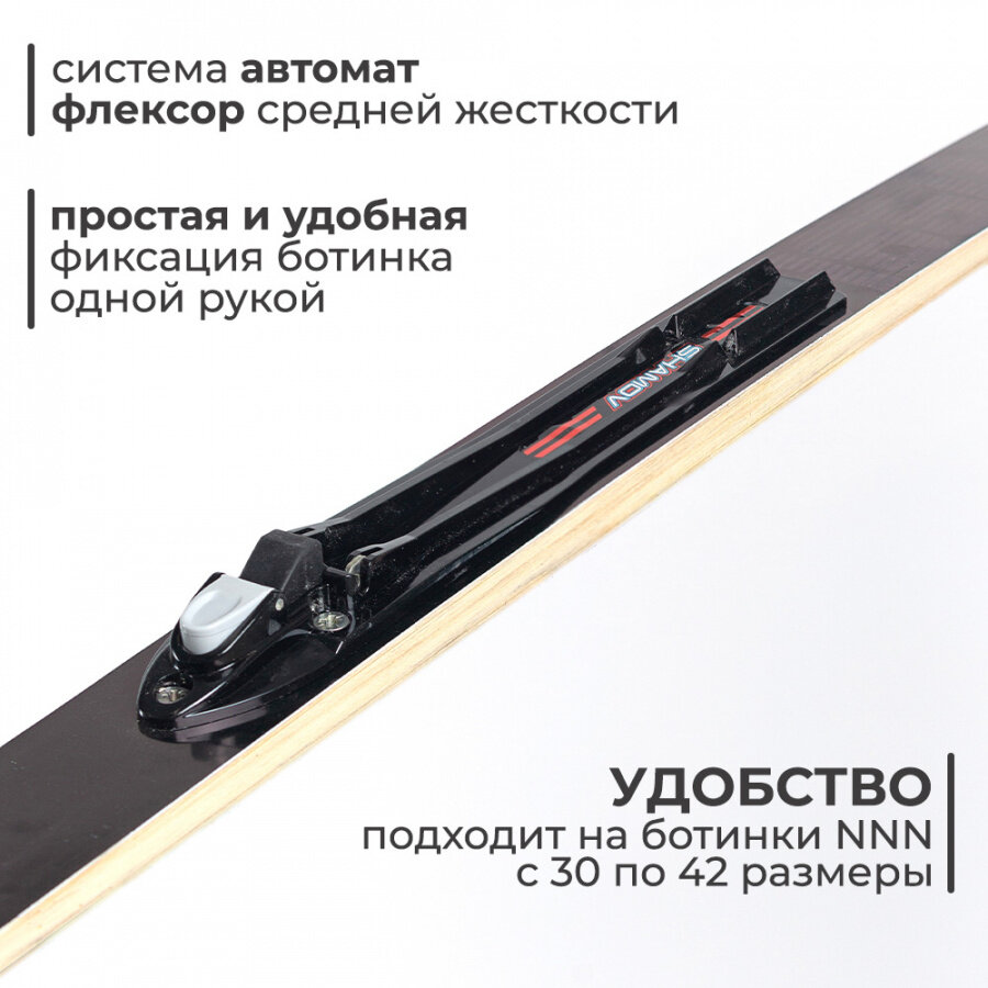 Лыжи беговые подростковые Маяк 160 см деревянные с креплениями NNN красно-бело-черные 2 230 ₽