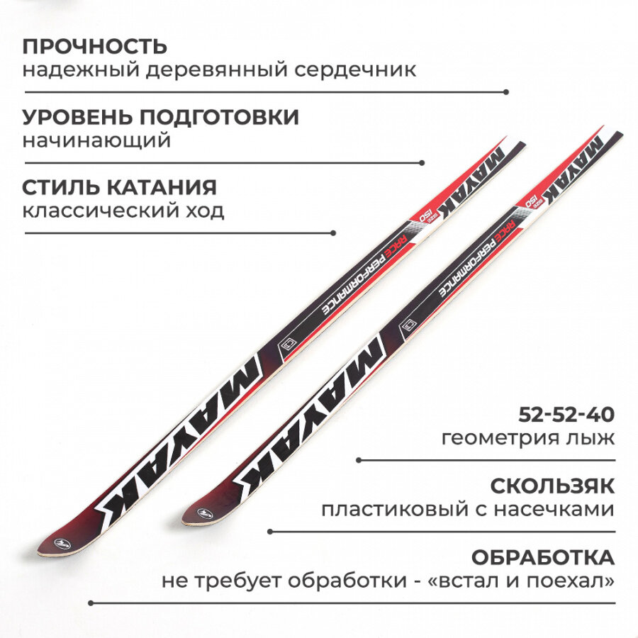 Лыжи беговые подростковые Маяк 160 см пластиковые (дерево-пластик) красно-бело-черные