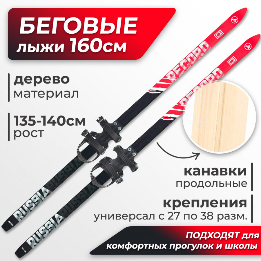 Беговые подростковые лыжи Маяк деревянные с универсальными креплениями 160 см, красно-черные информация: