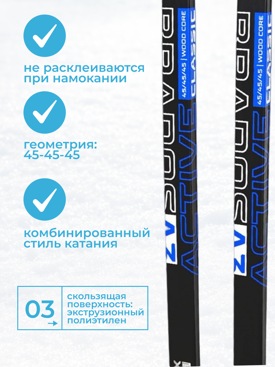 | Дополнительная информация | Лыжи применимы как для "классического хода", так и для "конькового" |