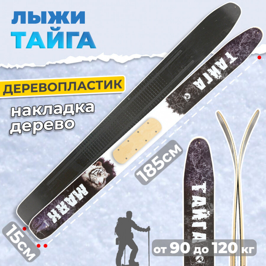 Охотничьи лыжи пластиковые 185х15 см Маяк тайга с деревянными накладками (дерево-пластик) информация: