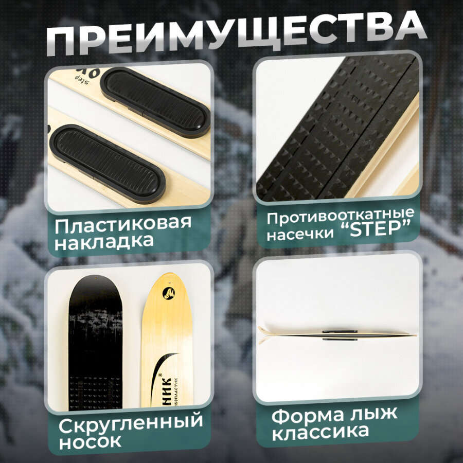Лыжи охотничьи Маяк охотник 155х15 см дерево-пластик с пластиковой накладкой и амортизатором