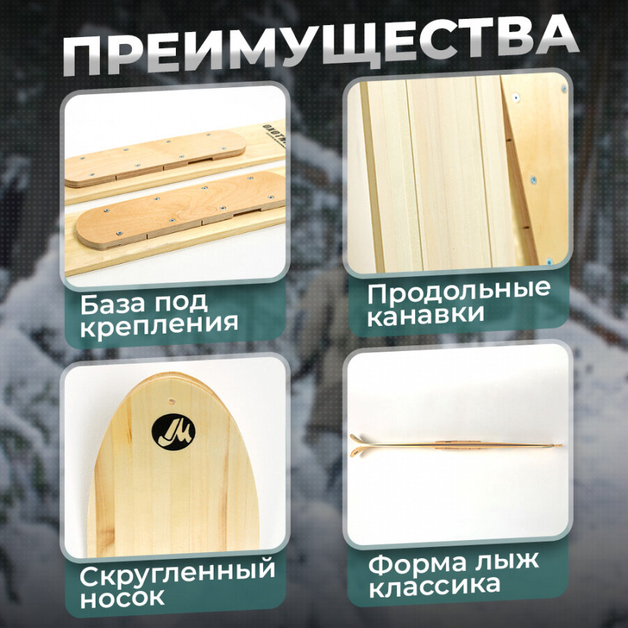 Лыжи охотничьи деревянные Маяк охотник 90 х 15 см с деревянными накладками информация: