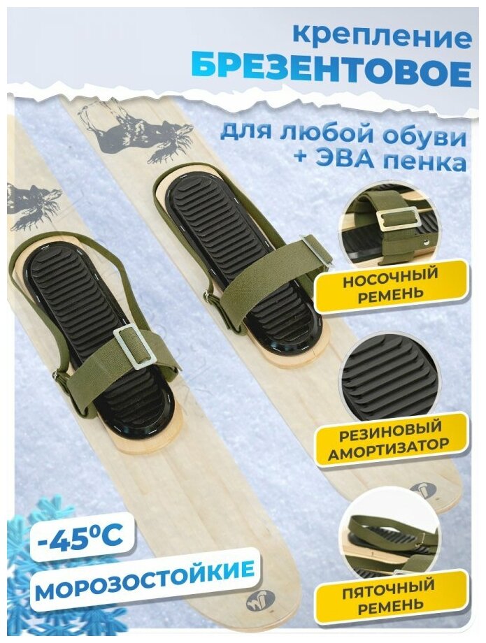 Комплект охотничьих лыж Маяк охотник с креплением брезент 155х15 см, дерево информация: