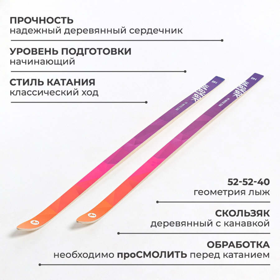Лыжи беговые подростковые Маяк 140 см деревянные фиолетовые-розовые-оранжевый информация:
