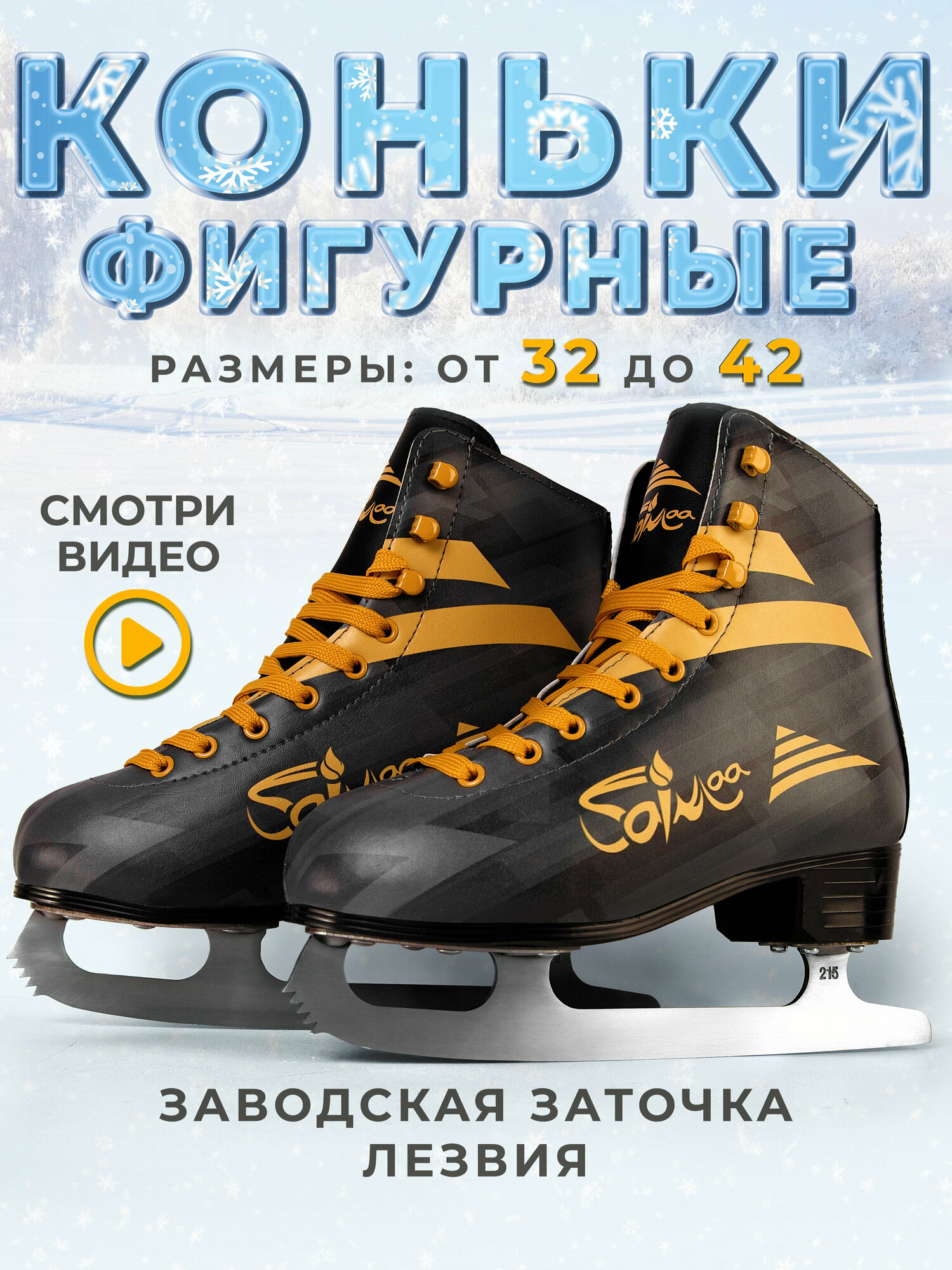 Коньки фигурные Saimaa\женские\подростковые\детские\черный золото\39 информация: