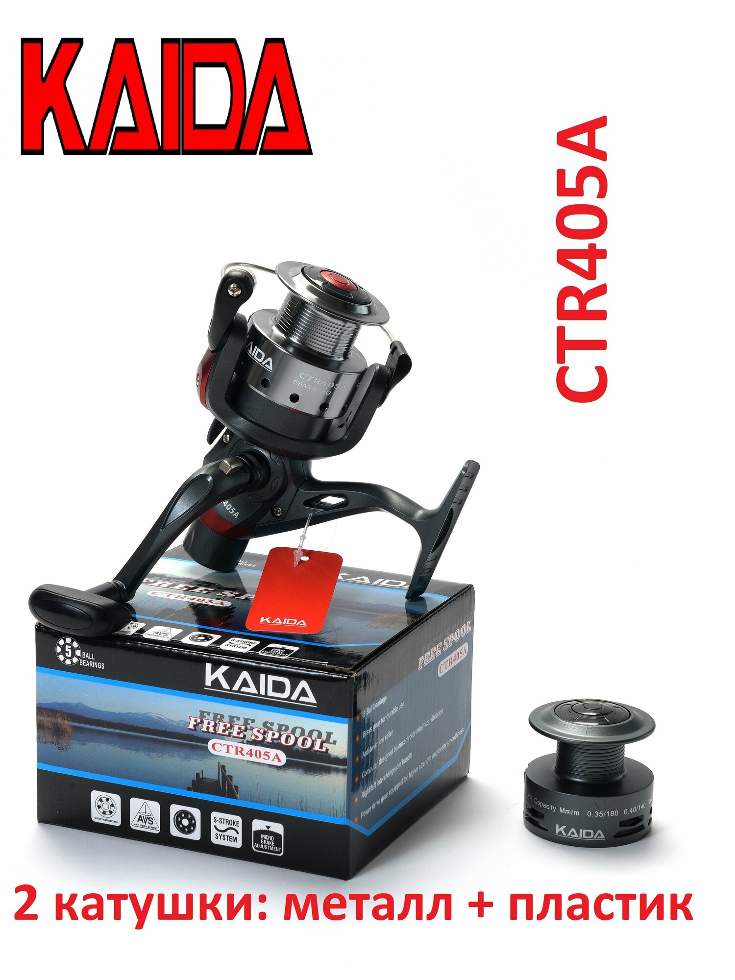 Катушка рыболовная Kaida CTR-405A-5BB безынерционная с дополнительной шпулей информация: