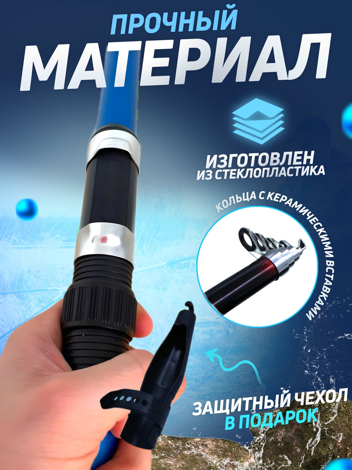 Удочка для рыбалки летняя телескопическая Оснащенная-сборная 2,1 м с оснасткой