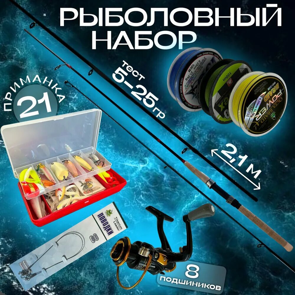 Готовый рыболовный набор для спиннинговой рыбалки/Спиннинг для рыбалки 2.1 м /Рыболовные снасти информация: