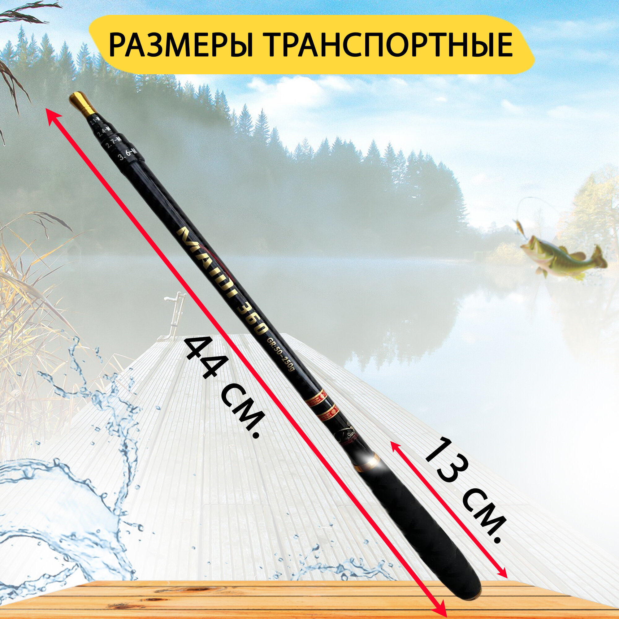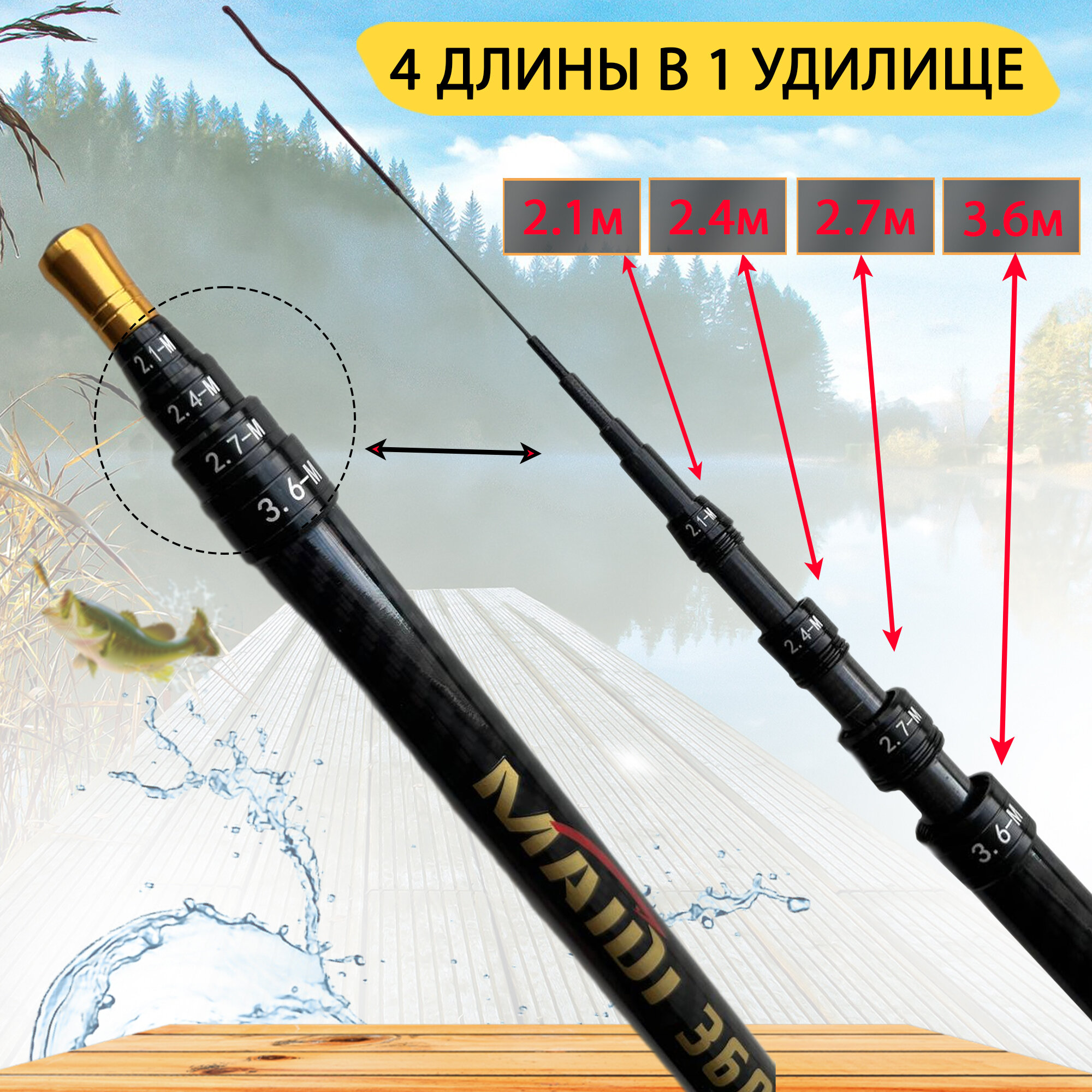 Маховое телескопическое удилище Maidi 3.6 метра, с переменной длиной. 4 длины в 1 удочке. информация: