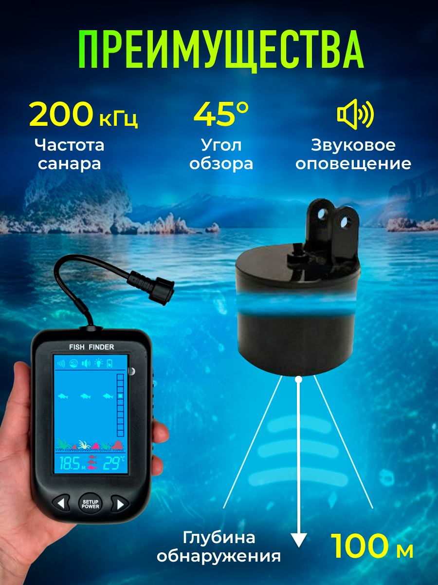 Эхолот для зимней и летней рыбалки/ Эхолот беспроводной/ Подводная камера для рыбалки информация: