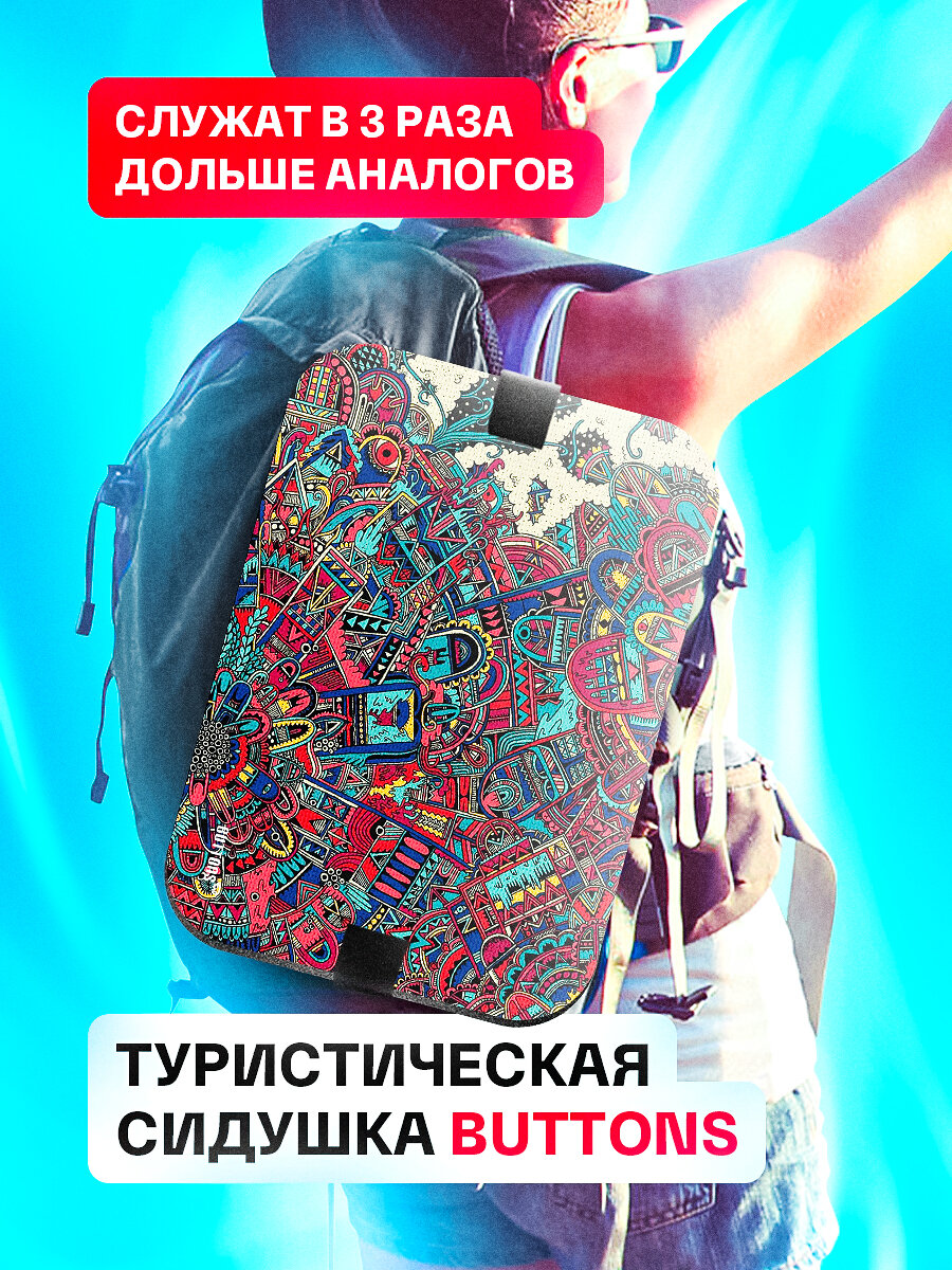 Сидушка туристическая под попу Buttons, походная прямоугольная хоба с рисунком